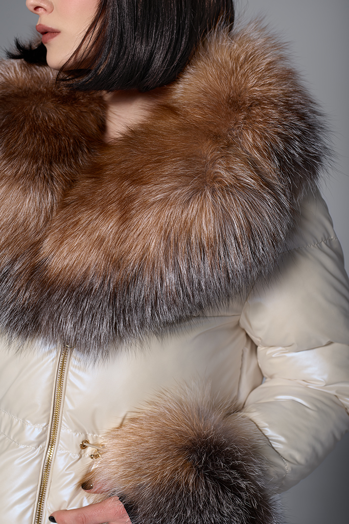 Geacă de fâș cu guler și manșete din vulpe canadiană, Bej, Carolina Design