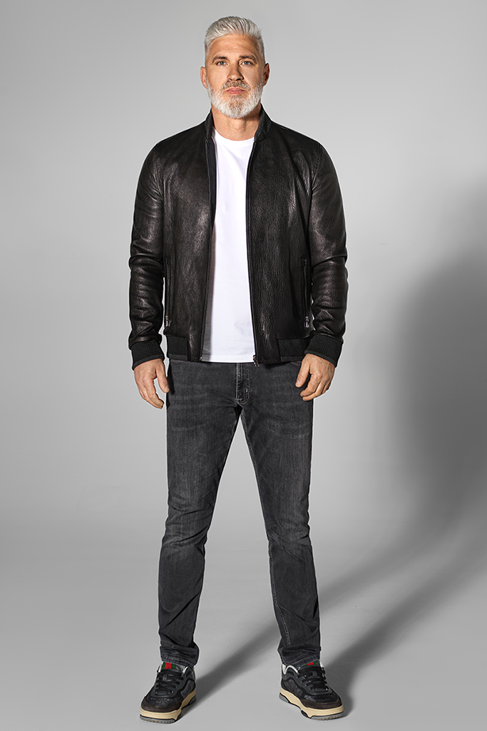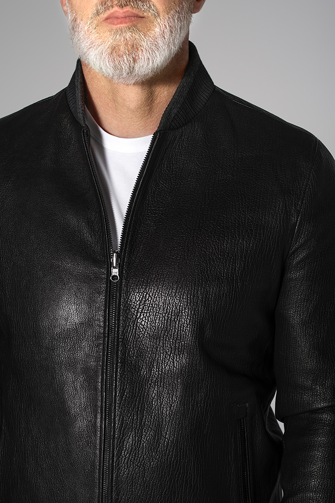 Geaca Cooper este realizată din piele naturală Nappa, prelucrată tip jumbo, atent selecționată pentru durabilitate și finisaj premium.