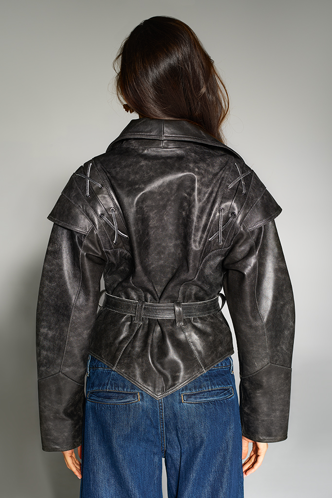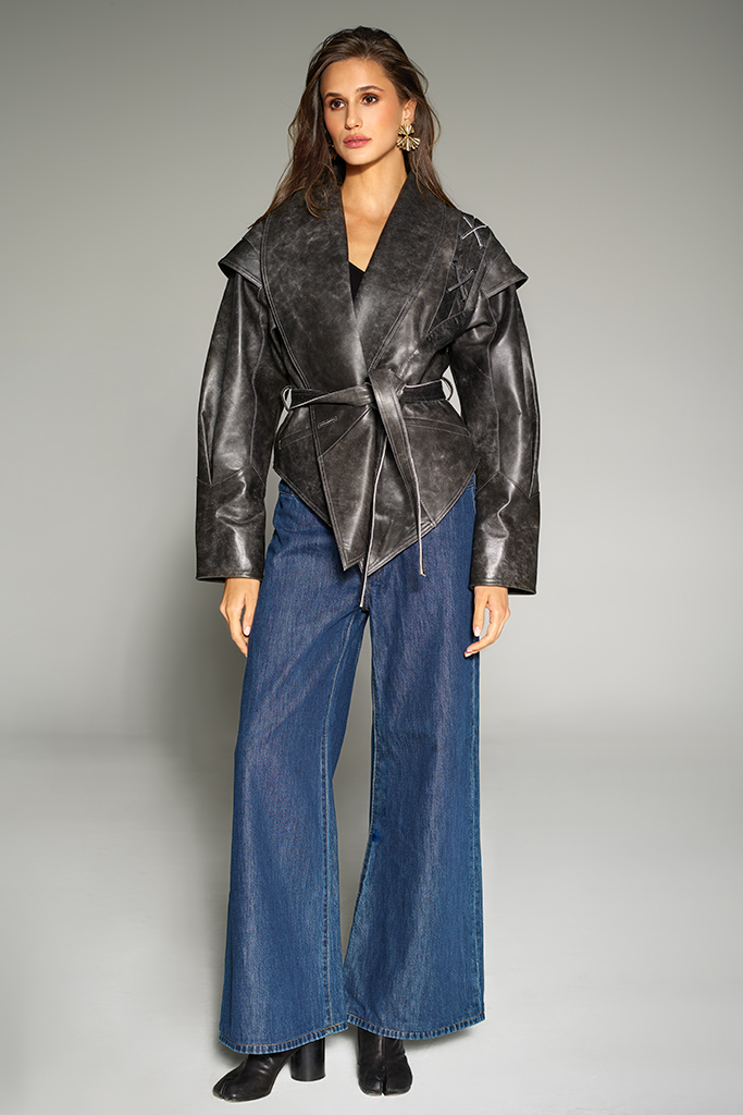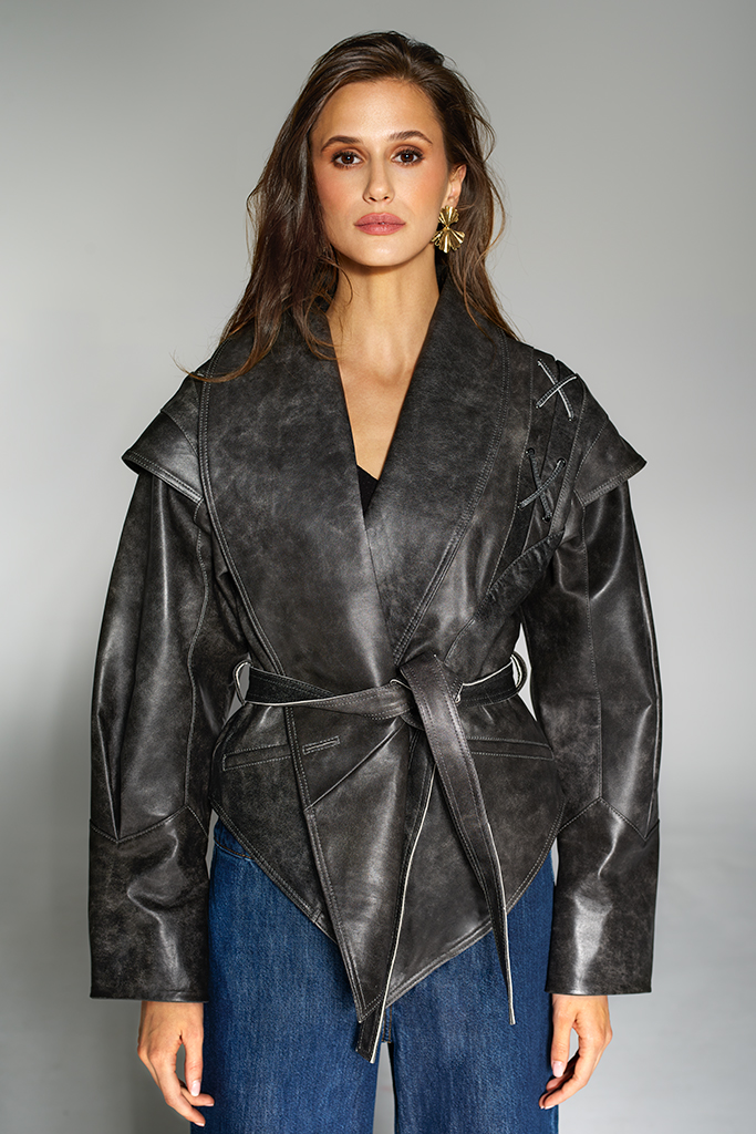 Geacă de piele naturală, Aged Grey, Carolina Design