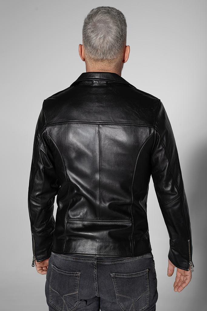 Detalii: croială biker, piele naturală Nappa premium, fermoare frontale și laterale, finisaje elegante și luxuriante.