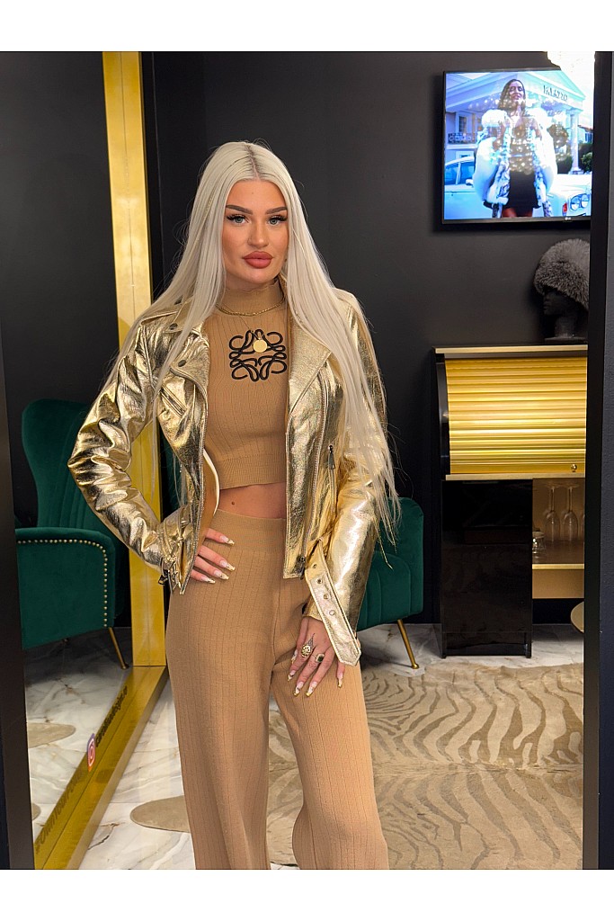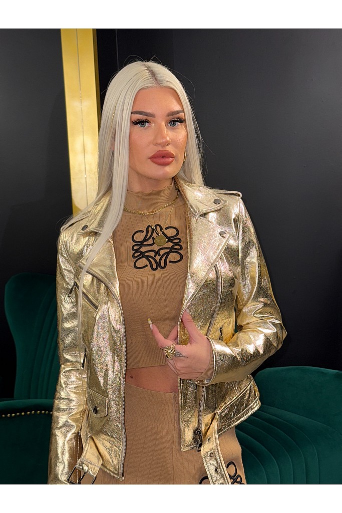 Geaca de piele naturala Biker , 1511 , Gold , Carolina Design x BLD