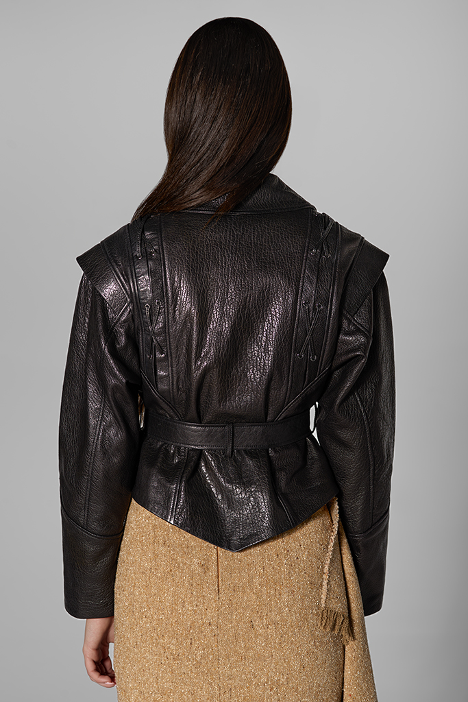 Geaca este realizată din piele naturală de calitate superioară, cu un finisaj aparte ce evidențiază textura și profunzimea nuanței. Designul contemporan, cu linii bine definite, oferă un aer sofisticat și actual, potrivit femeilor care apreciază piesele statement.