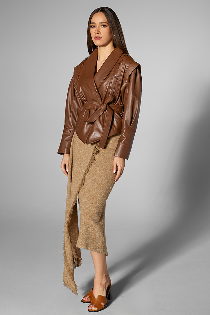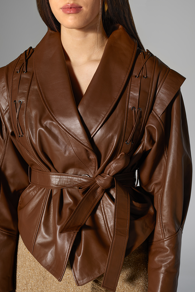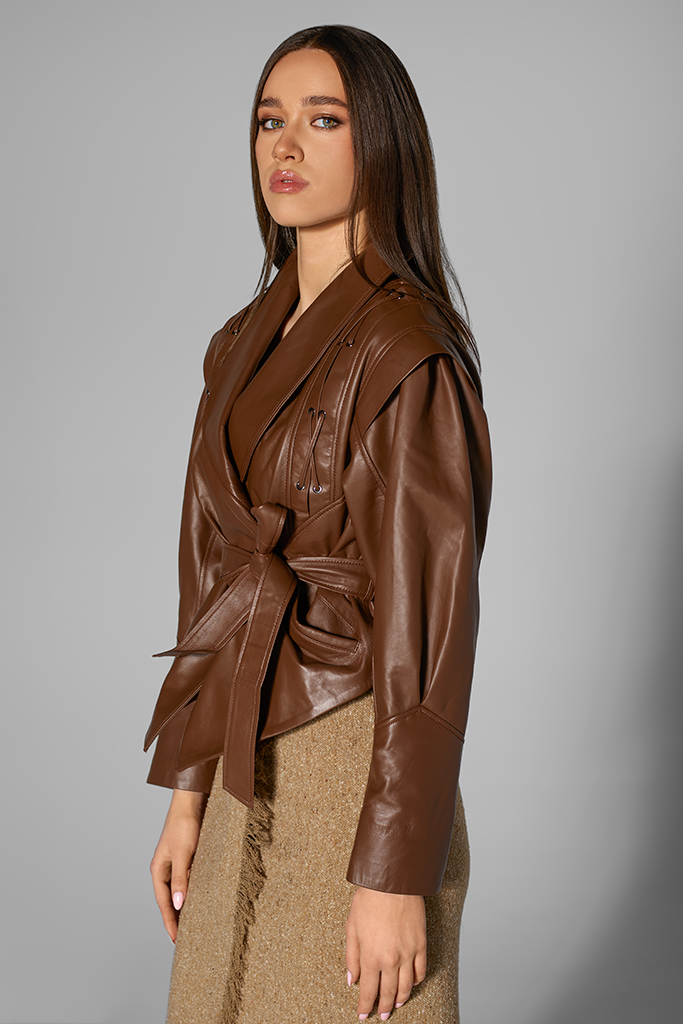 Geacă de piele naturală, Chocolate, Carolina Design