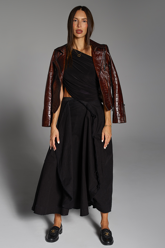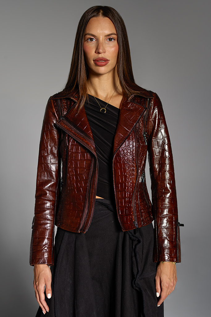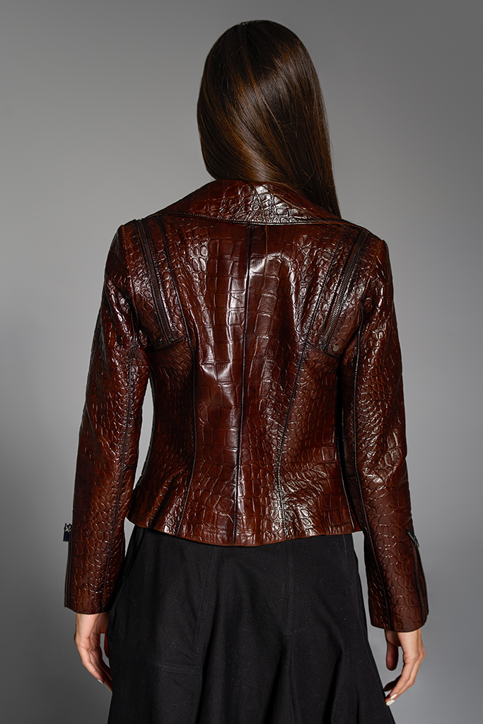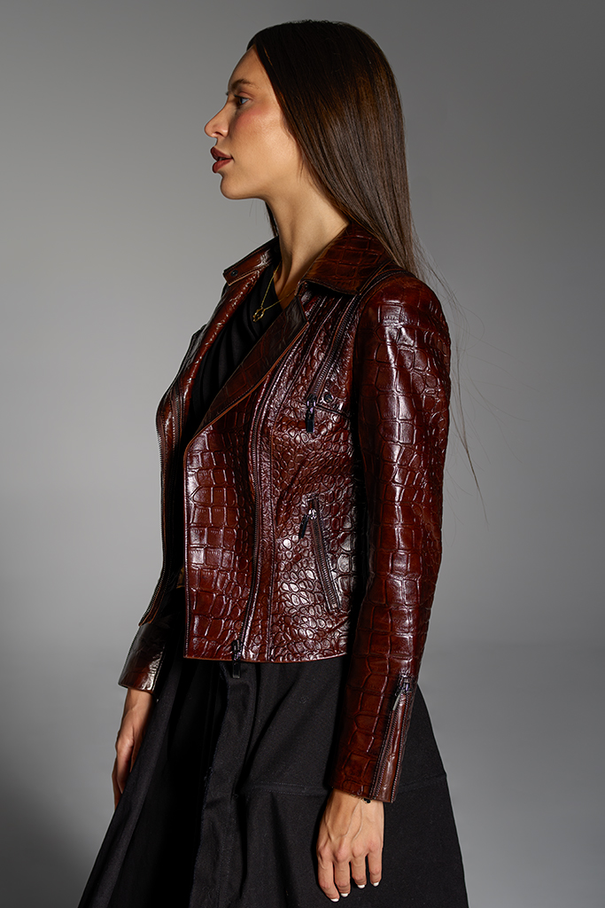 Geaca de piele naturala imprimeu croco, Burgundy, Carolina Design