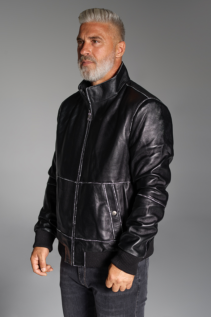 Geaca din piele naturala nappa, Oversized, Black, Carolina Design