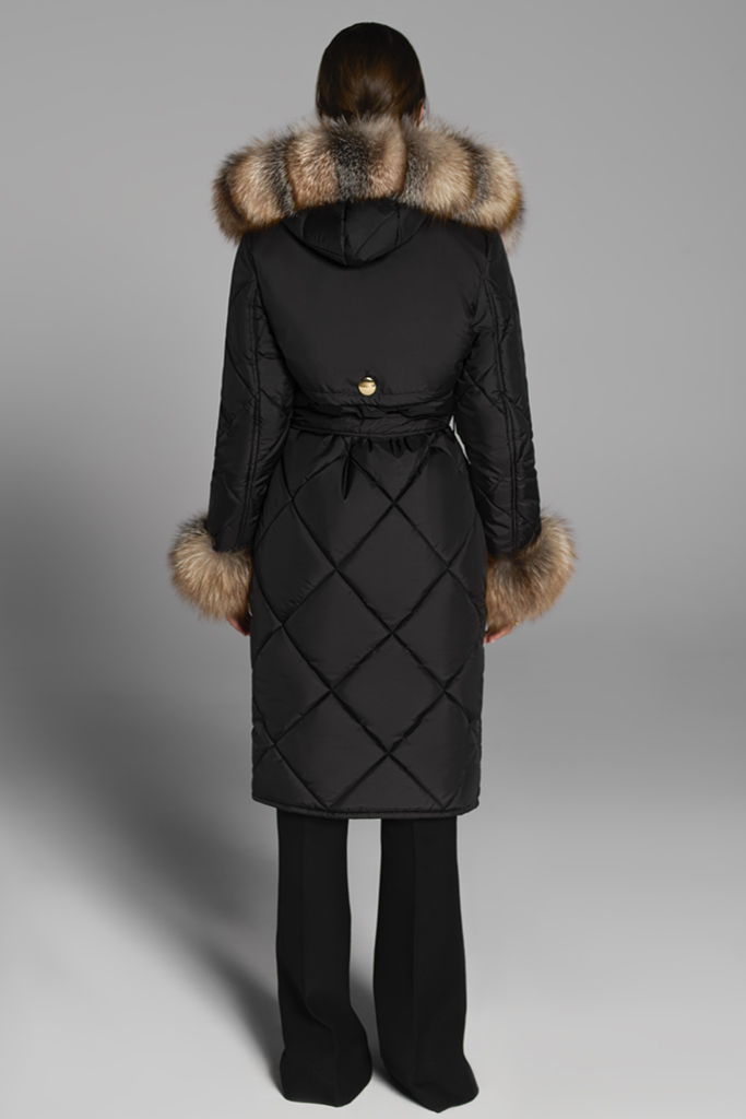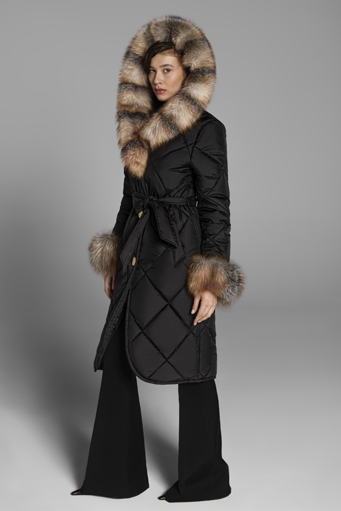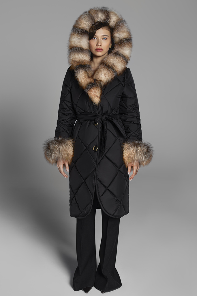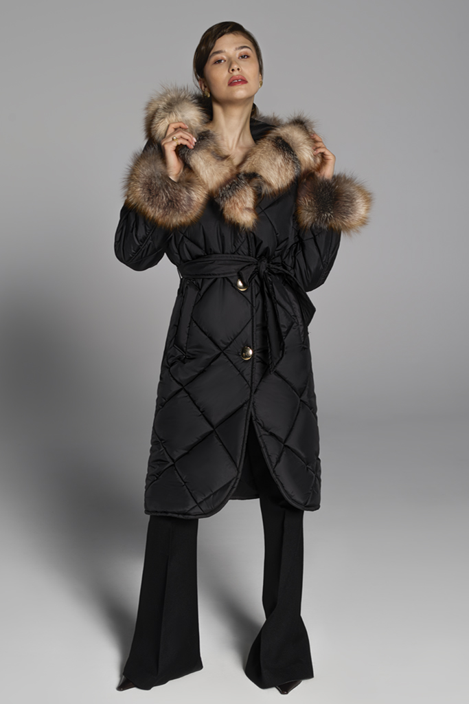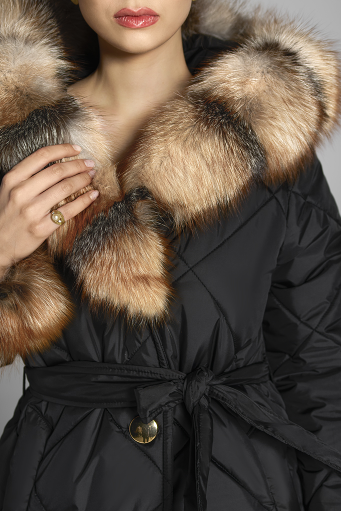 impermeabil cu garnitură din vulpe brown frost detașabilă.