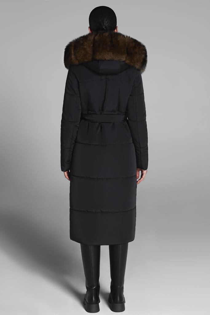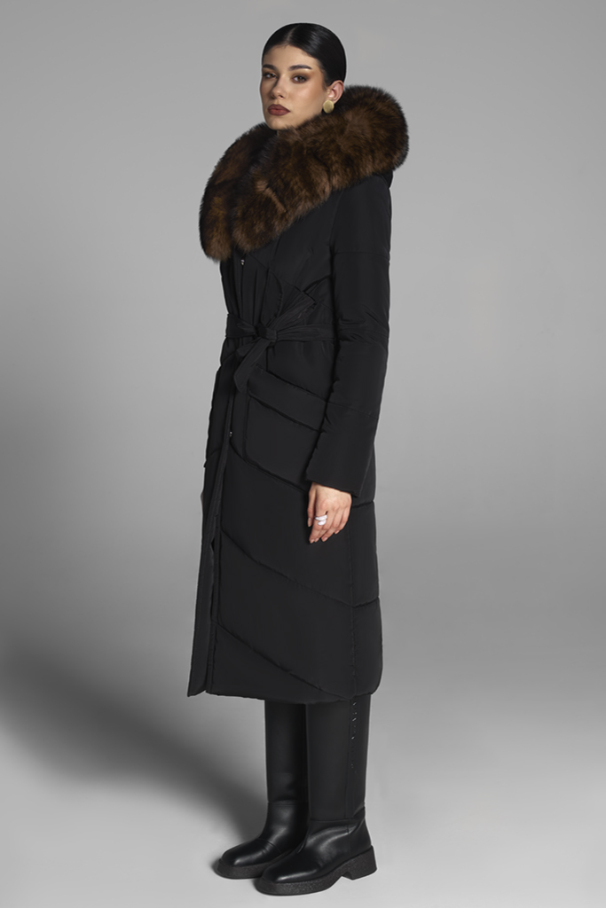 impermeabil, cu garnitura din vulpe samur, detasabila.
