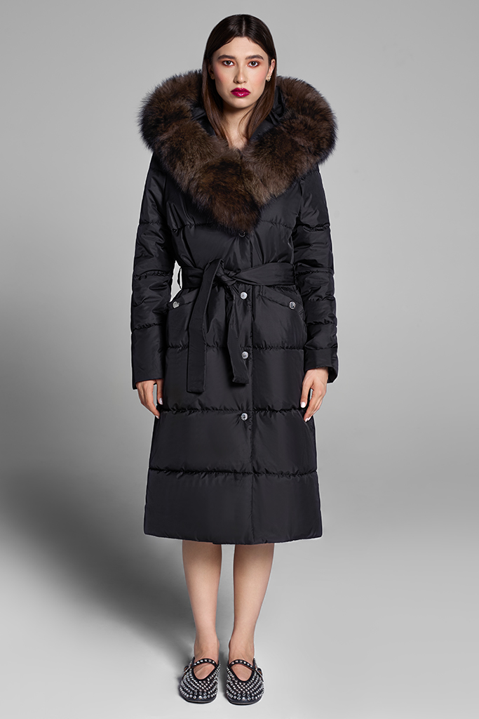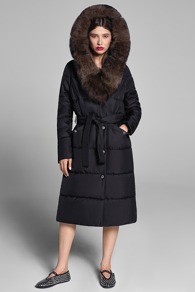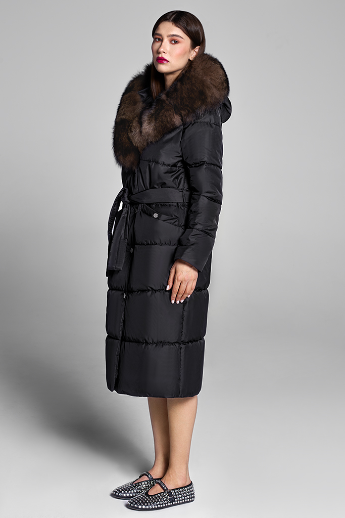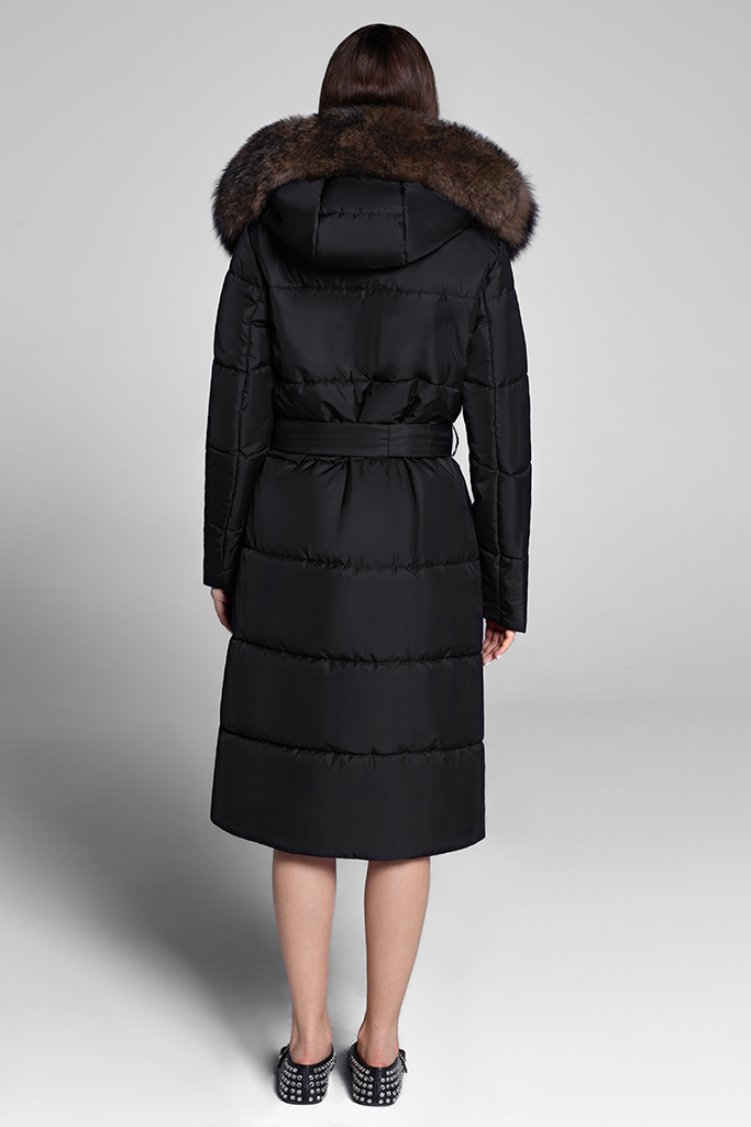 impermeabil, cu garnitură din vulpe samur, detașabilă.