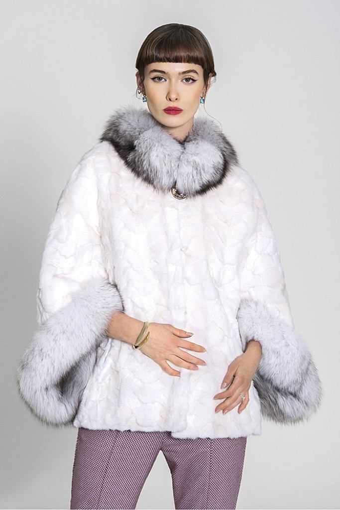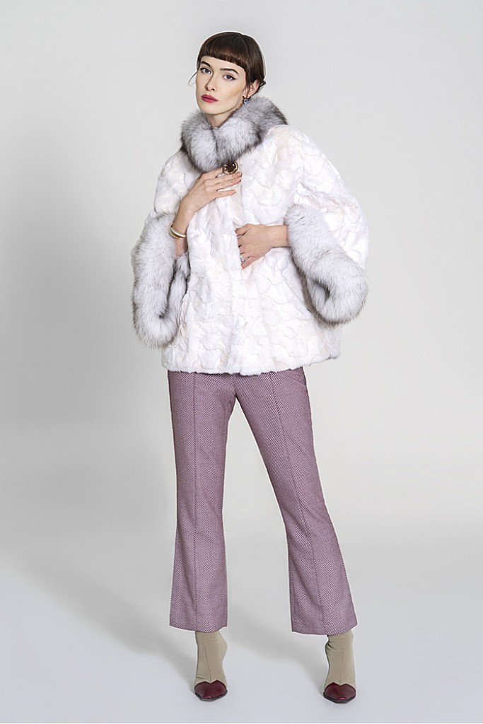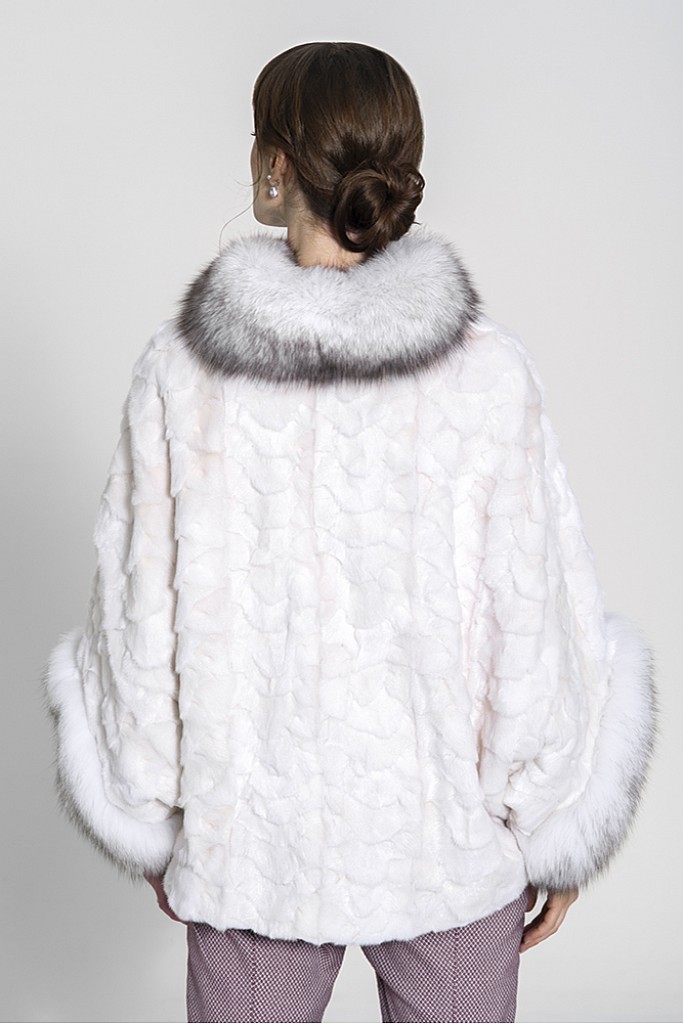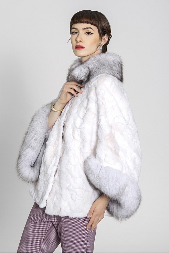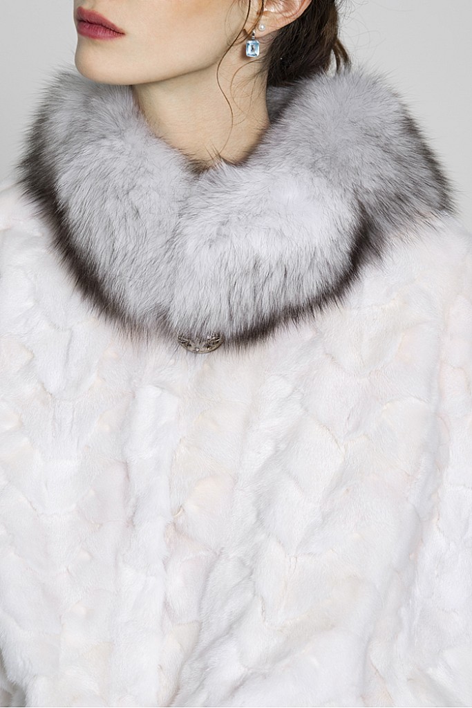 Haina de blana de vizon ( nurca ) , cu vulpe polara FLUTURES , Alb , Carolina Design