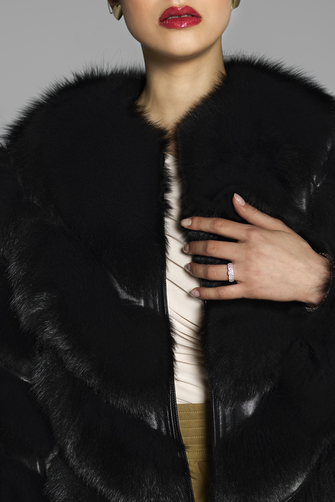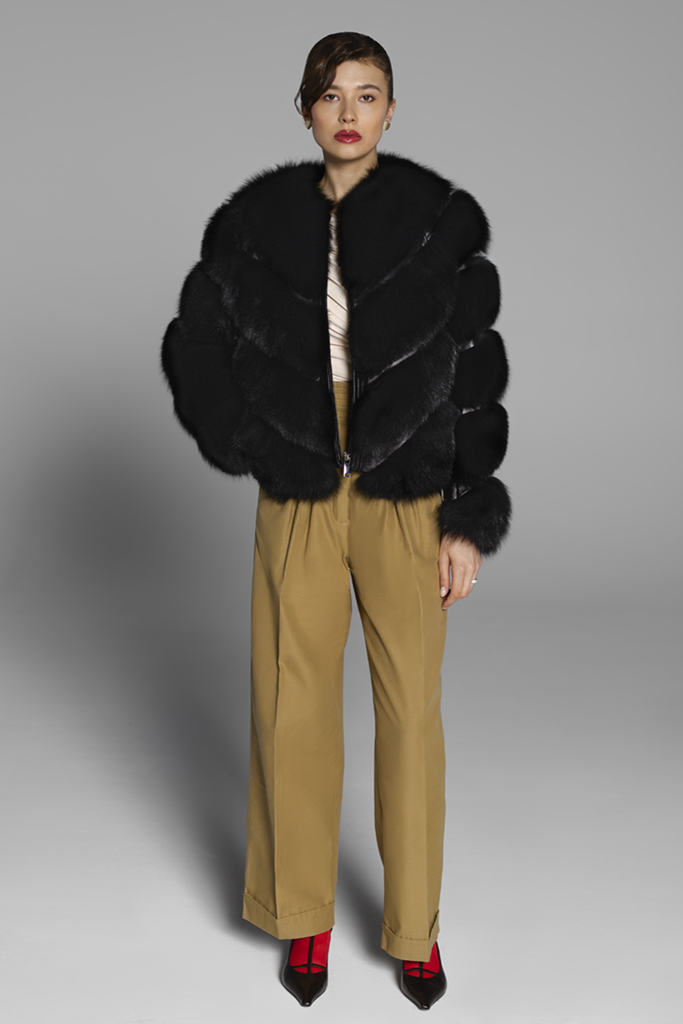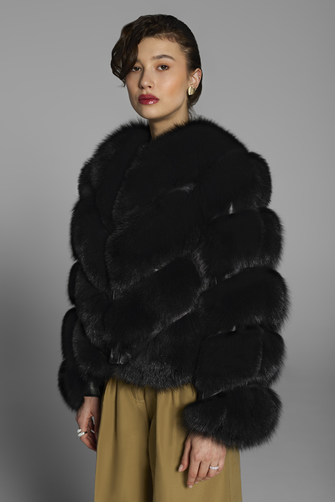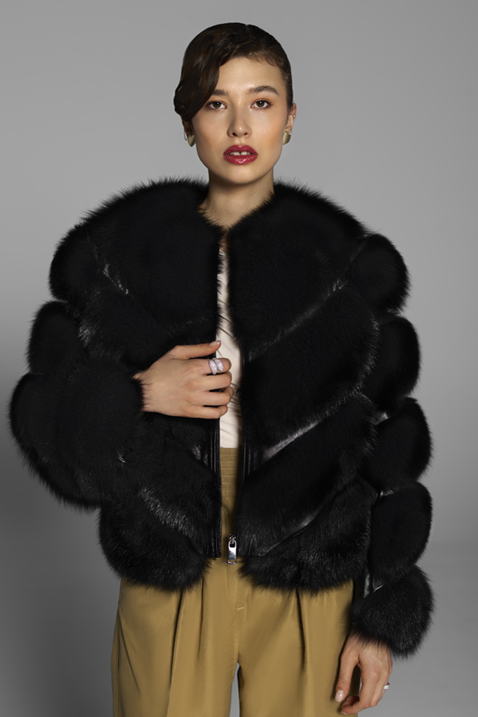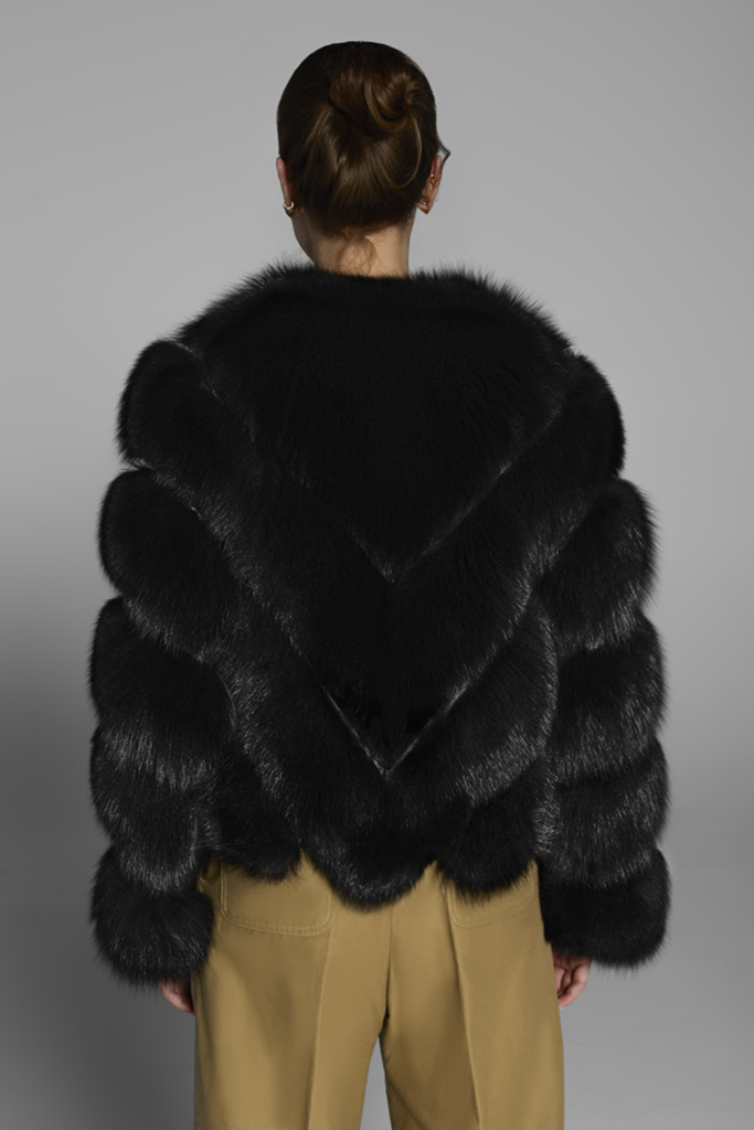 Haina de blana de Vulpe Polara , Negru , cu fermoar , model Transformers 2 in 1 , "V" , Carolina Design