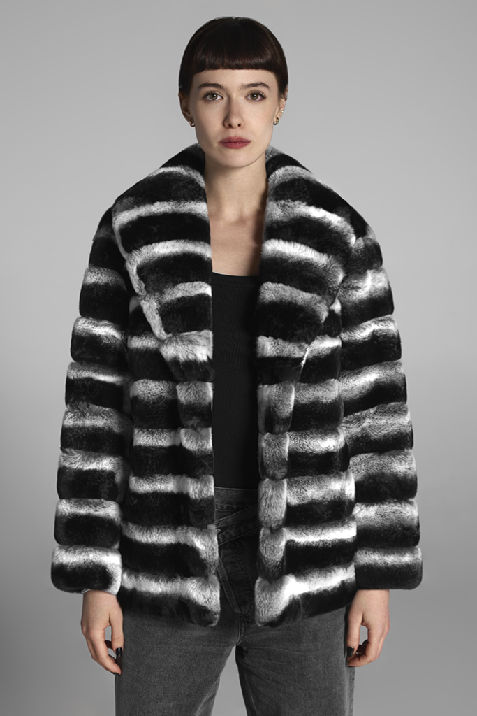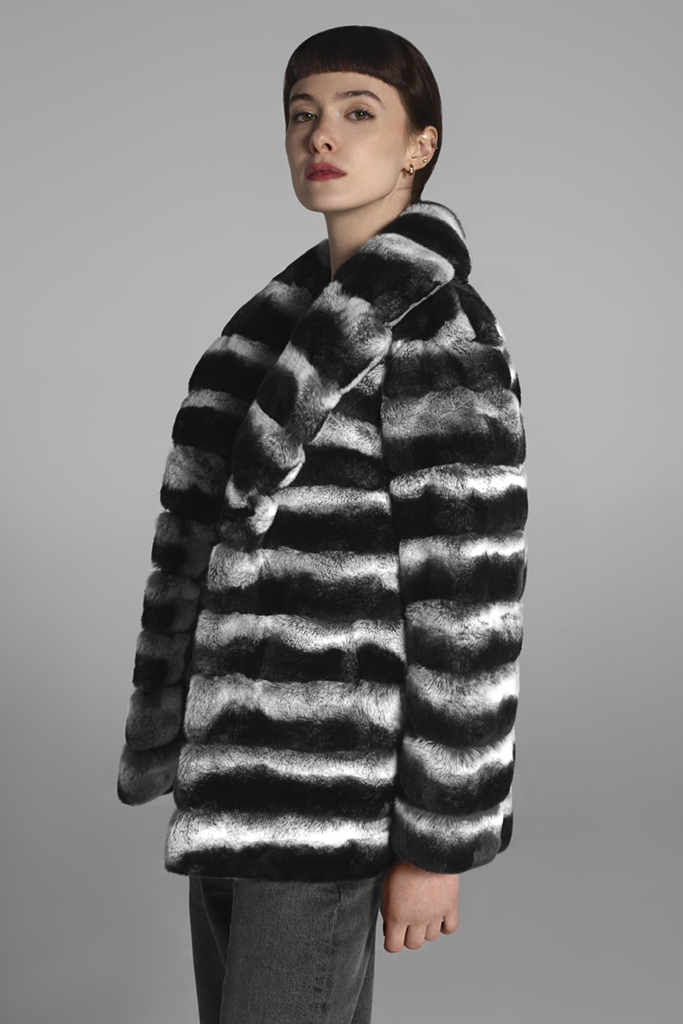 Haină de blană naturală de Chinchilla Rex , Natural , Danielle , Carolina Design