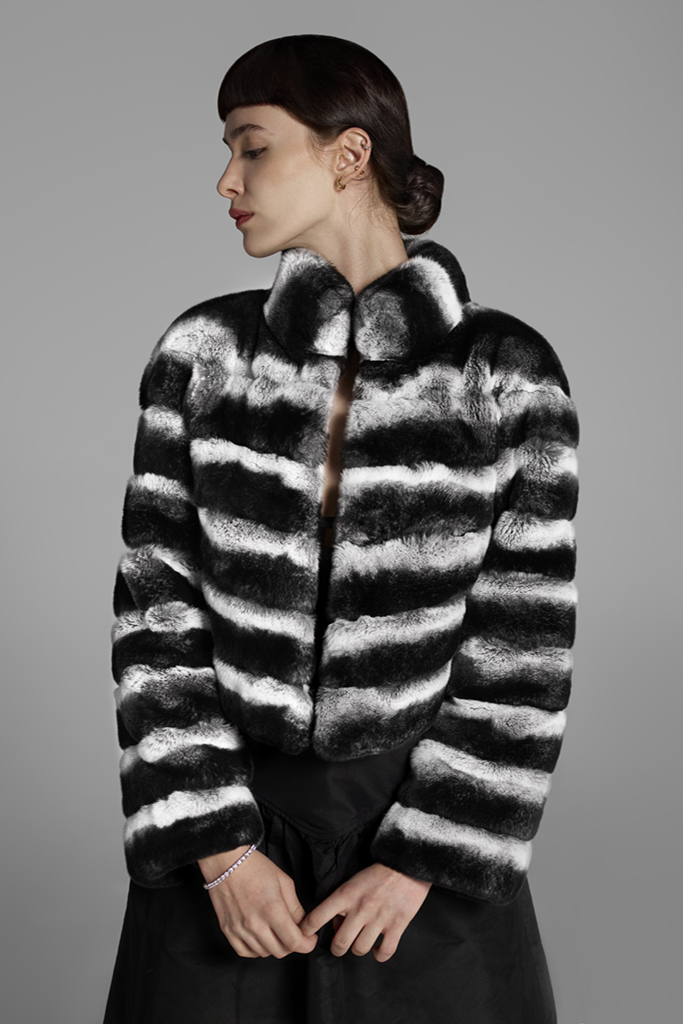Haină de blană naturală de Chinchilla Rex , Natural , Diane , Carolina Design