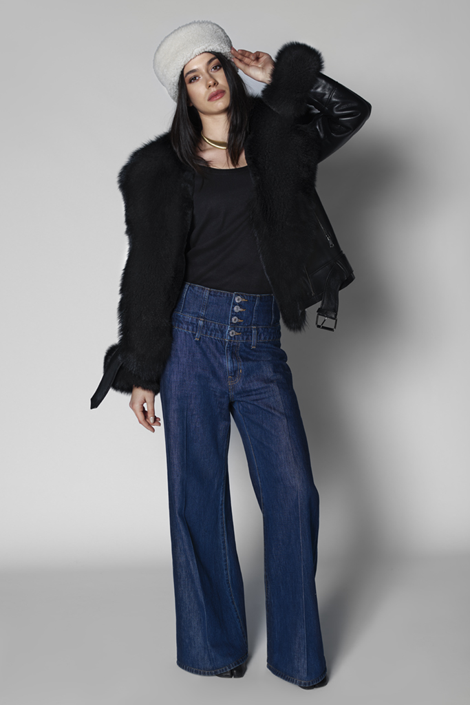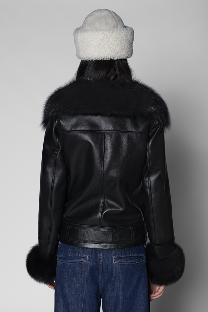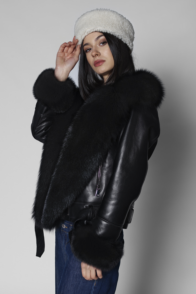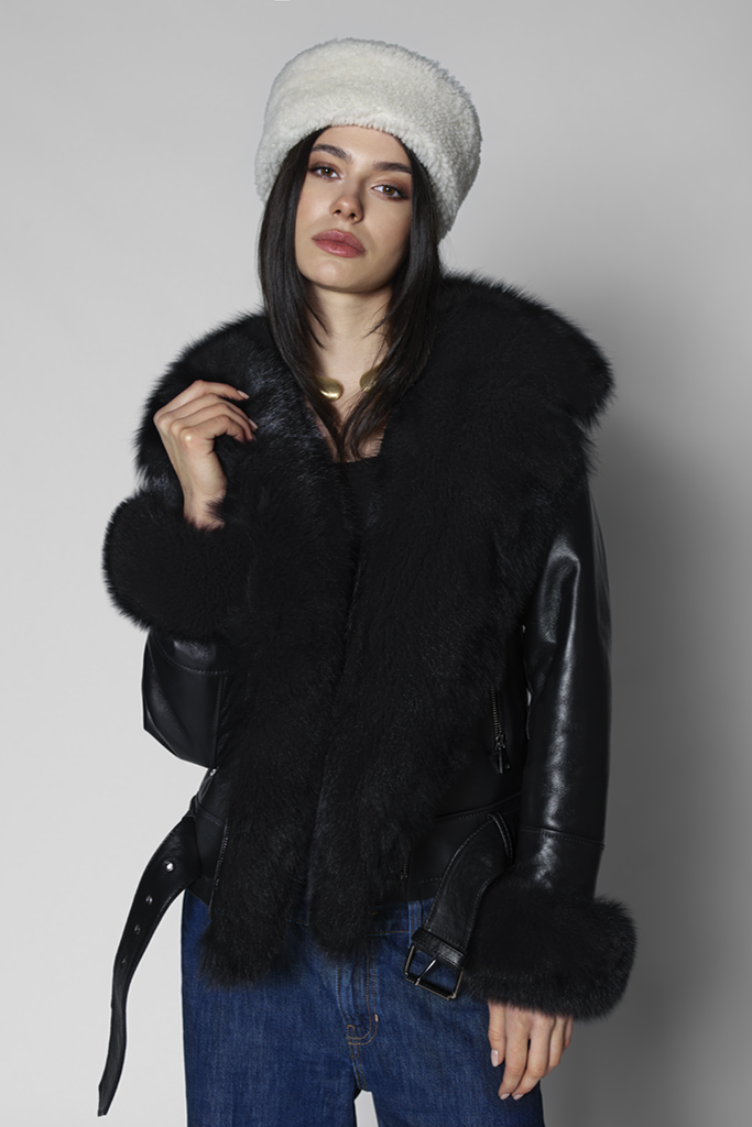 Haina de blana naturala de miel , Alana , cu vulpe polara neagra , Carolina Design