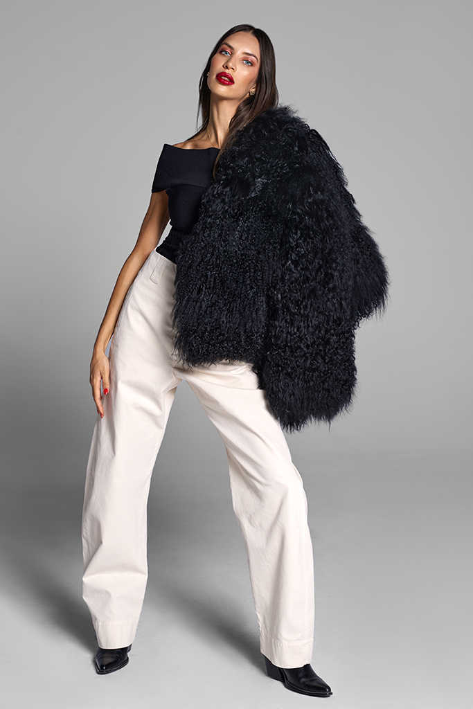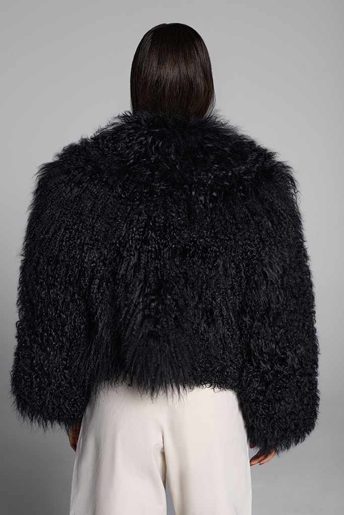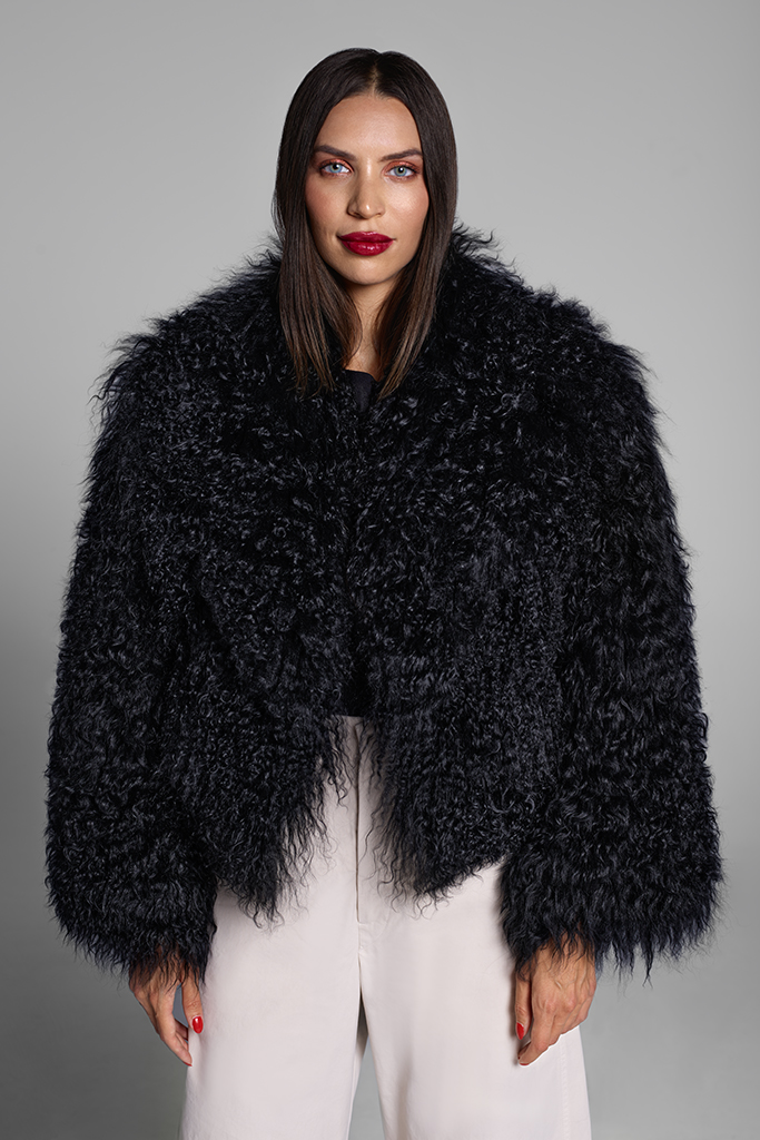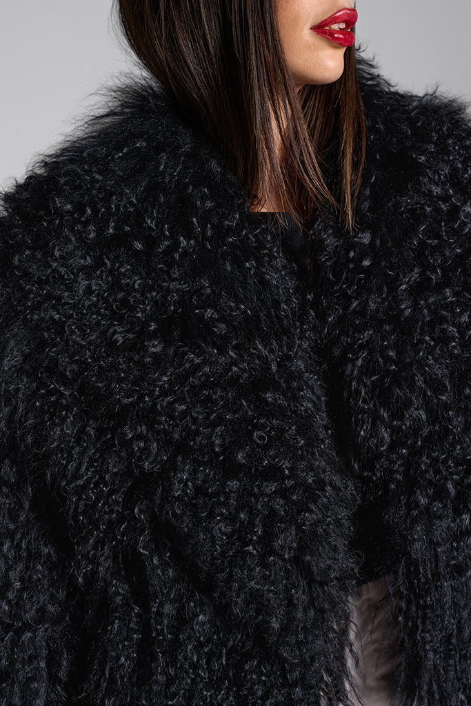 Haină de blană naturală de miel tibetan, Gia, Black, Carolina Design