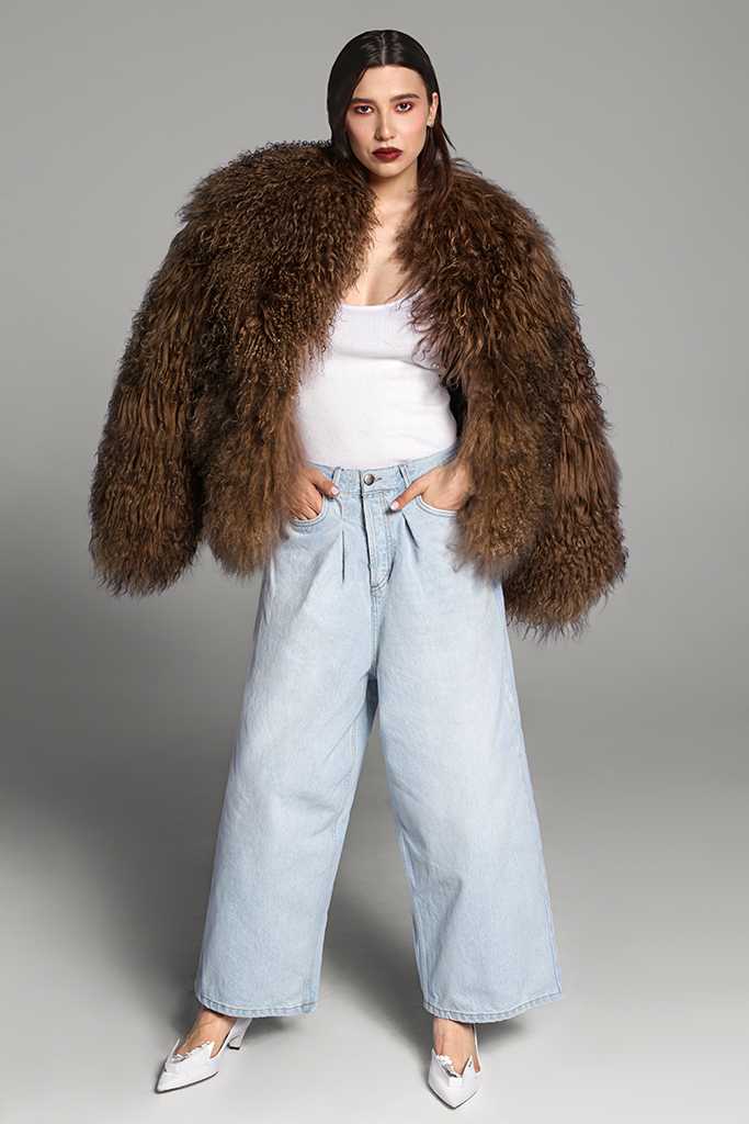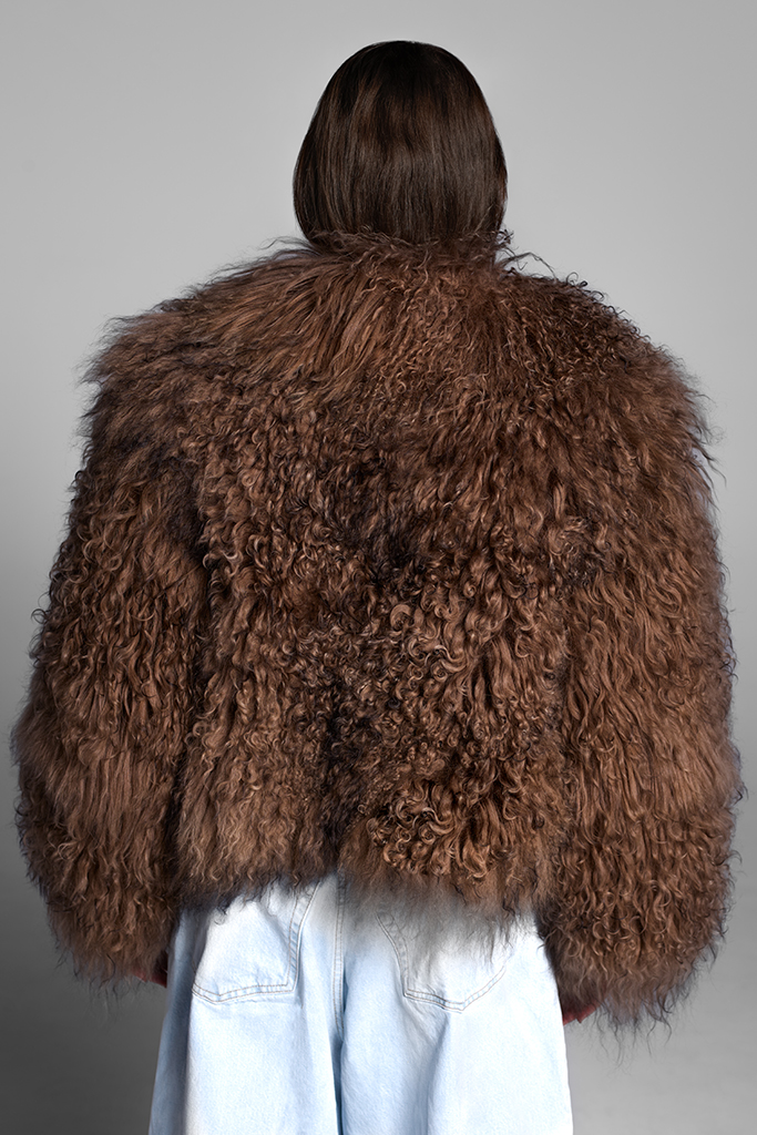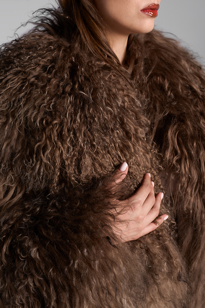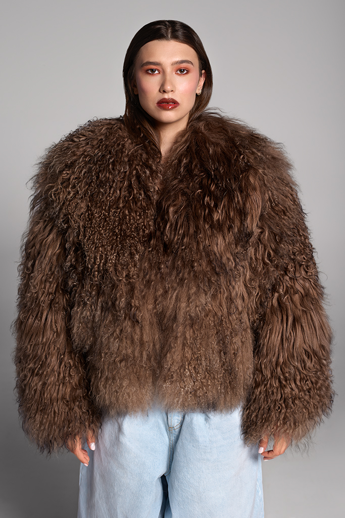 Haină de blană naturală de miel tibetan, Ina, Brown, Carolina Design