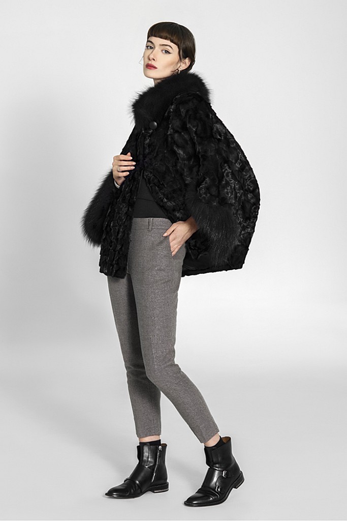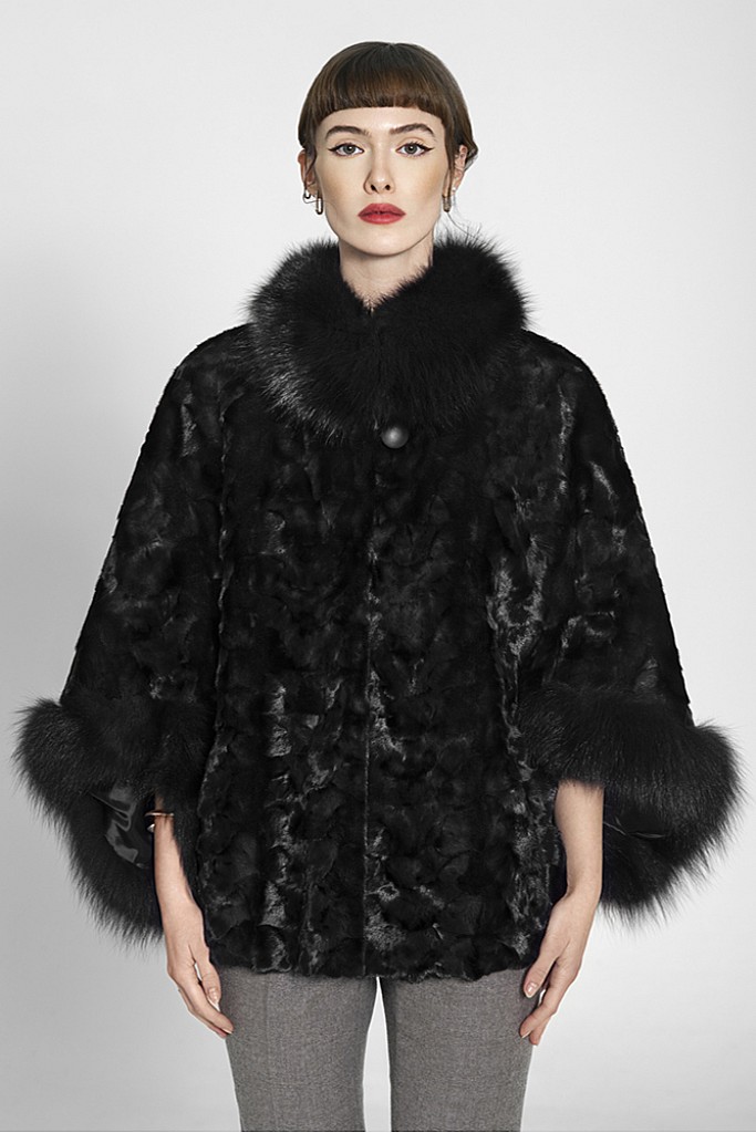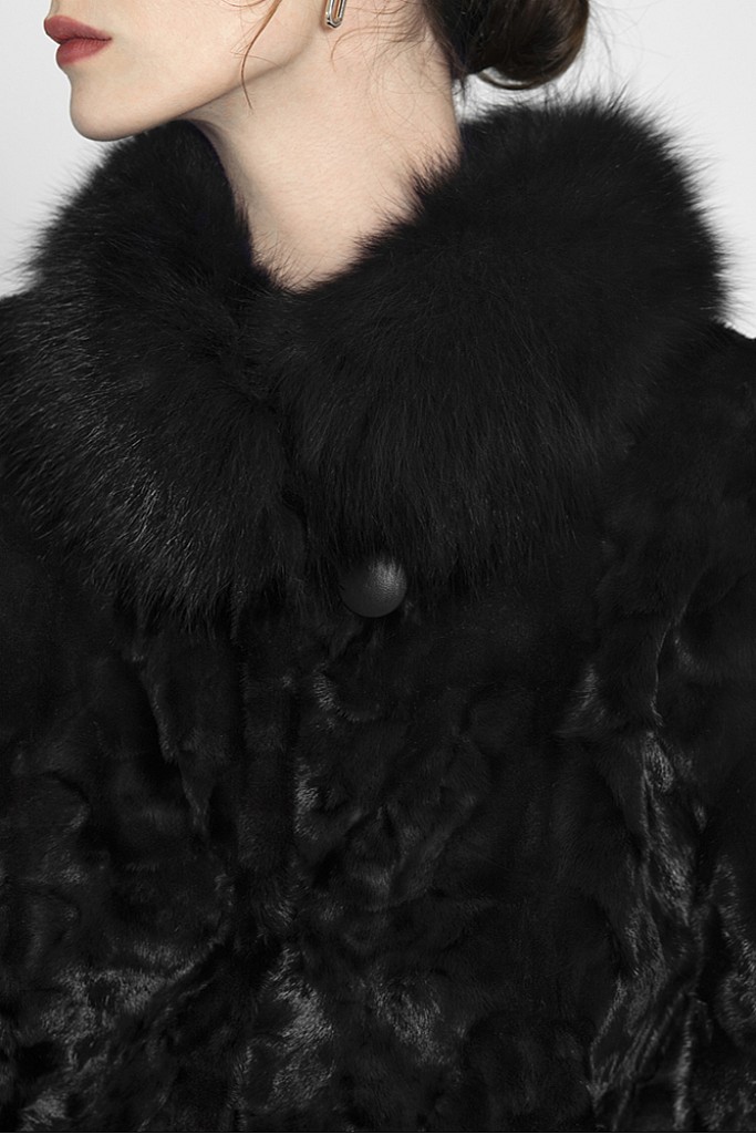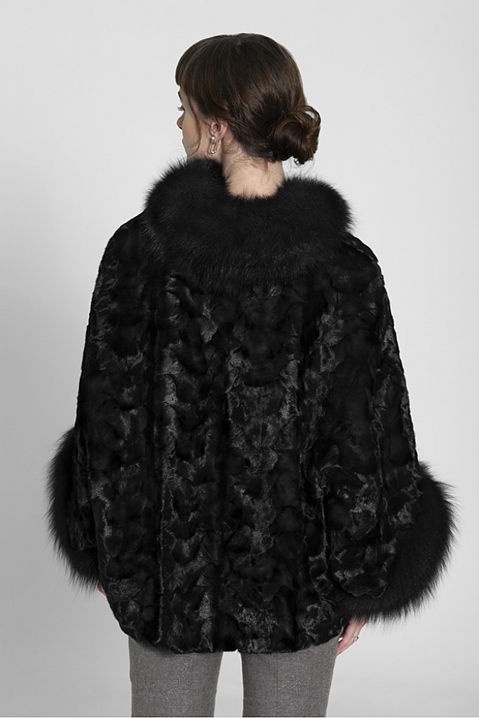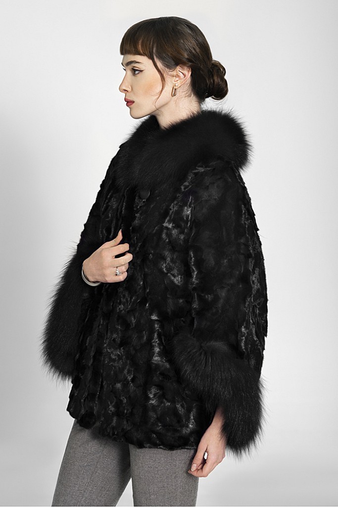 Haina de blana naturala de vizon ( nurca ) , cu vulpe polara , FLUTURES , Negru , Carolina Design