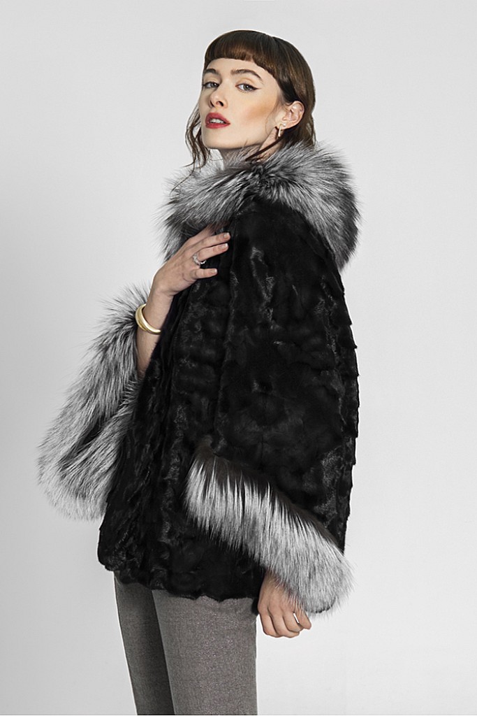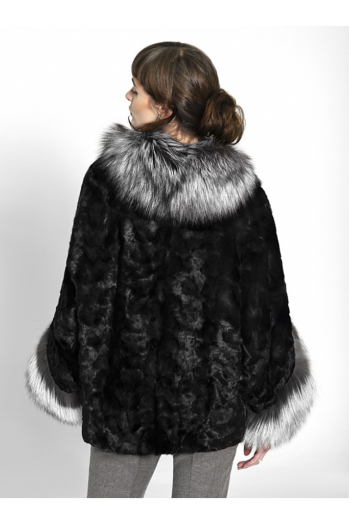 Haina de blana naturala de vizon ( nurca ) neagra cu vulpe argintie FLUTURE