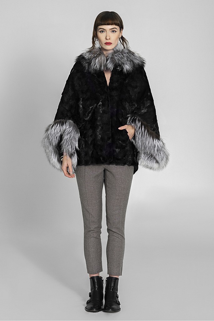 Croiul acestei haine este unul lejer si amplu.Este accesorizata cu o garnitura din vulpe argintie.Se poate accesoriza cu manusi fine din piele.