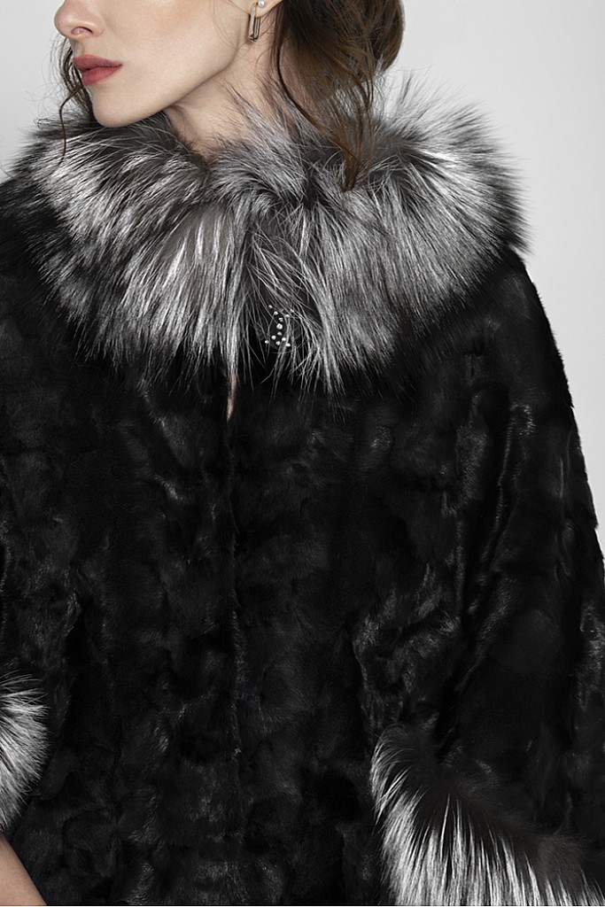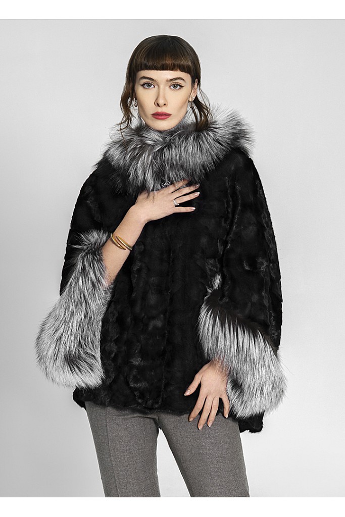 Haina de blana naturala de vizon ( nurca ) , cu vulpe argintie , FLUTURES , Negru , Carolina Design