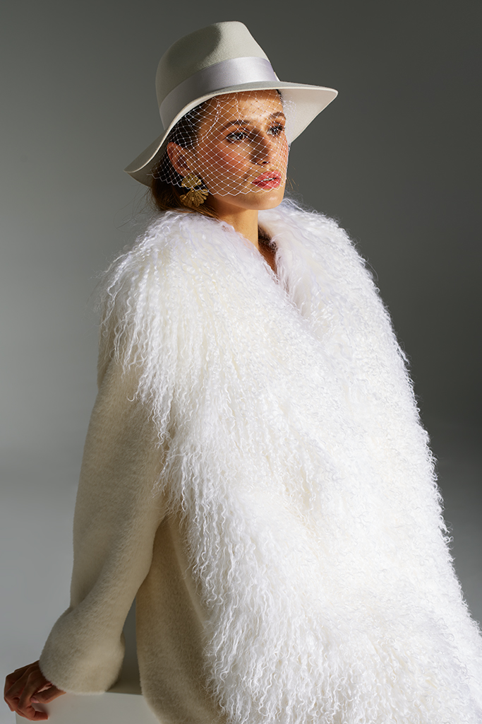 Haina din Alcantara cu blana naturala de Miel Tibetan, Alb, Carolina Design