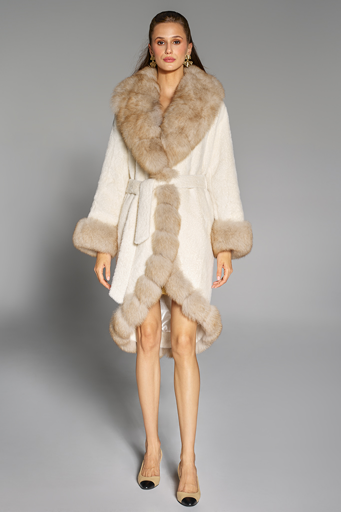 Palton din Alcantara Alb cu blana de Vulpe Caramel , Carolina Design x BLD