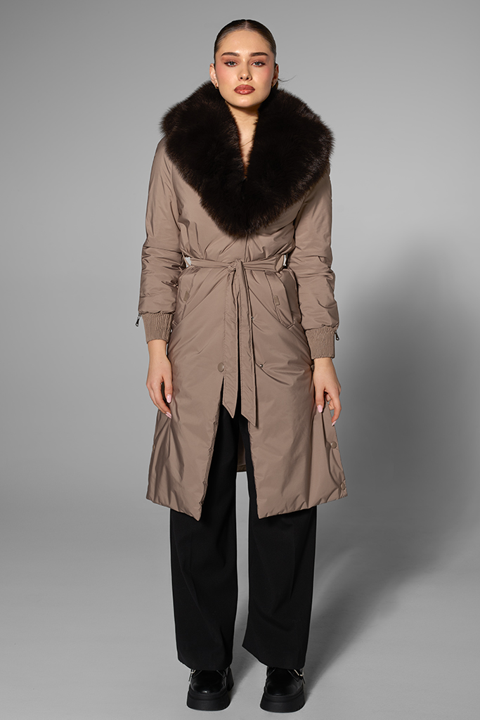 Geaca de fas cu guler de vulpe samur, Gri, Carolina Design