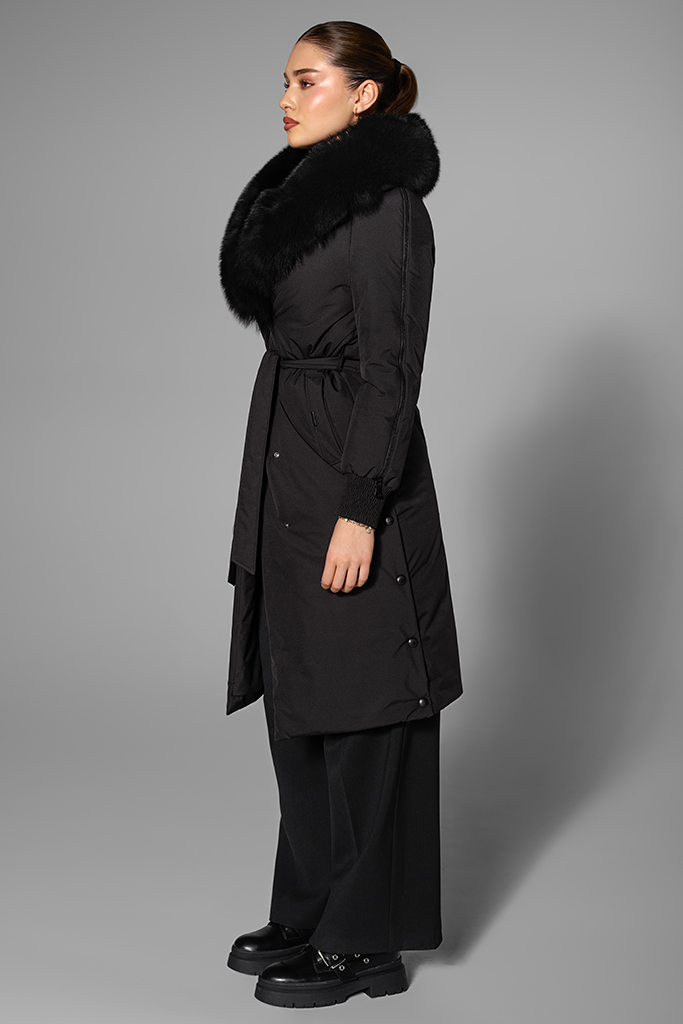 Geaca de fas cu guler de vulpe polara neagra, Negru, Carolina Design