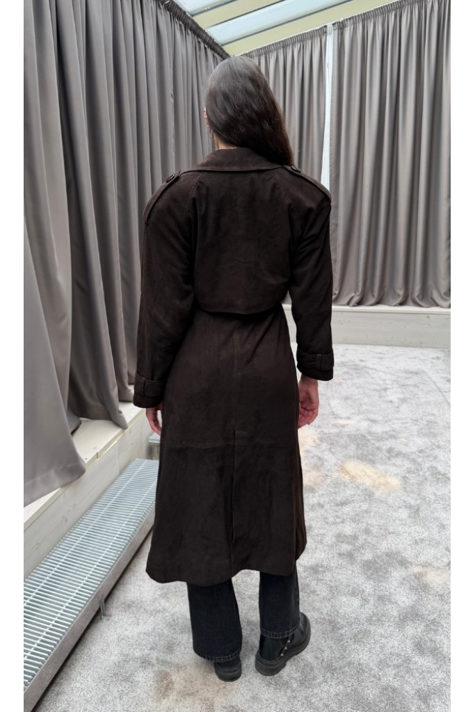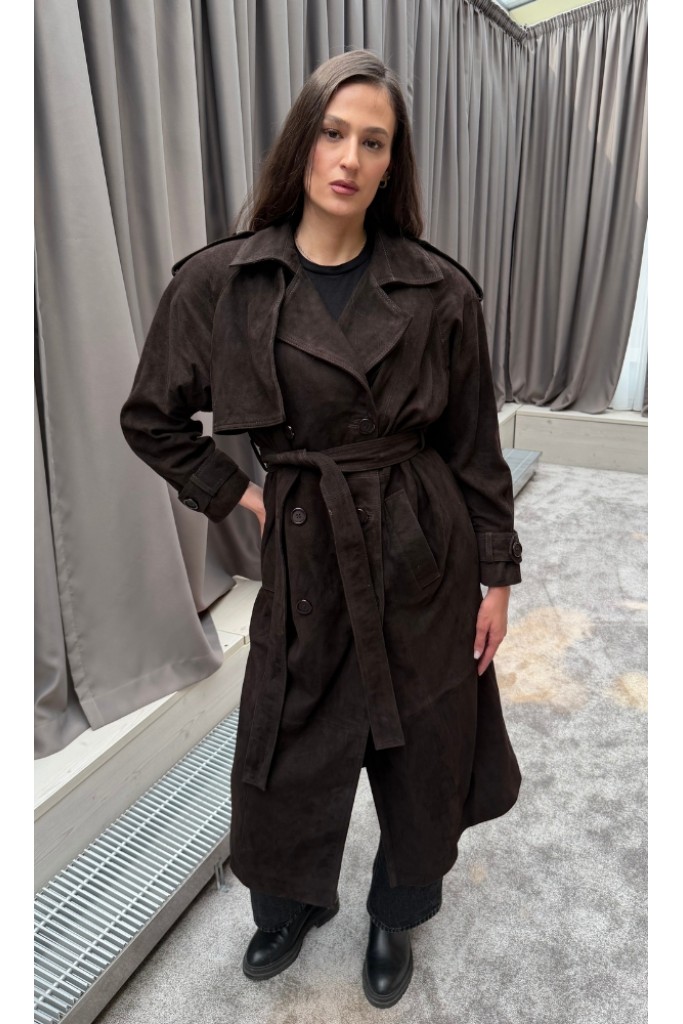 Trench din piele naturală întoarsă, Chocolate, Carolina Design