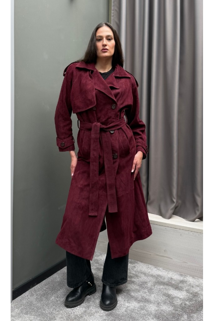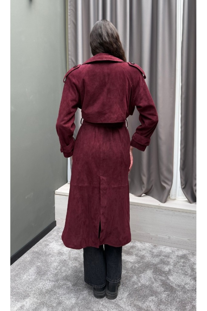 Trench din piele naturala intoarsa, Burgundy, Carolina Design