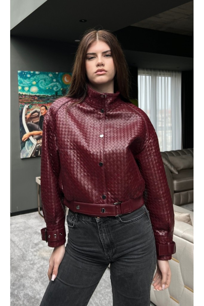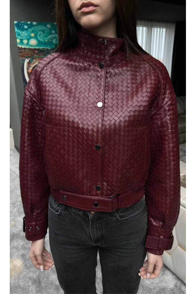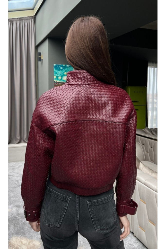 Haina din piele naturala impletita, Burgundy, Carolina Design