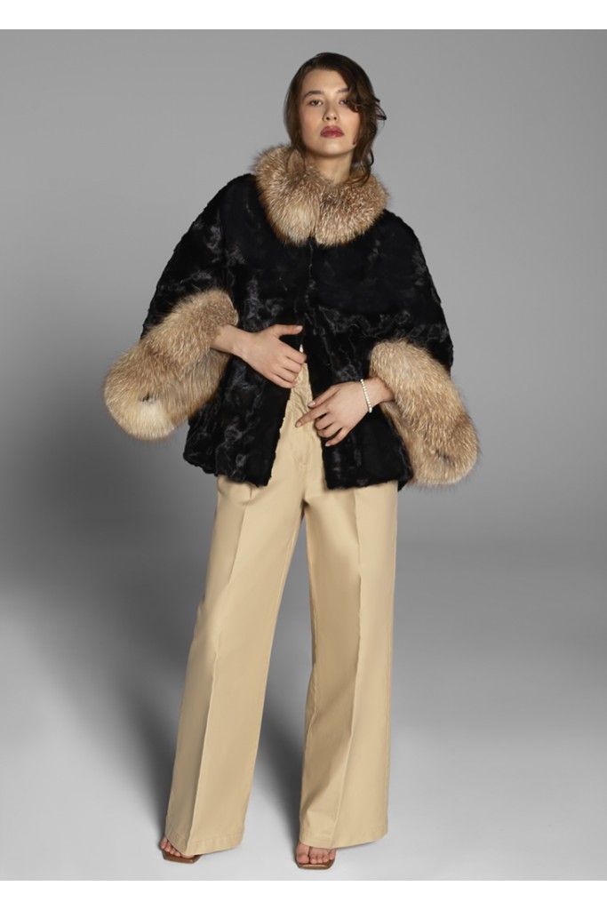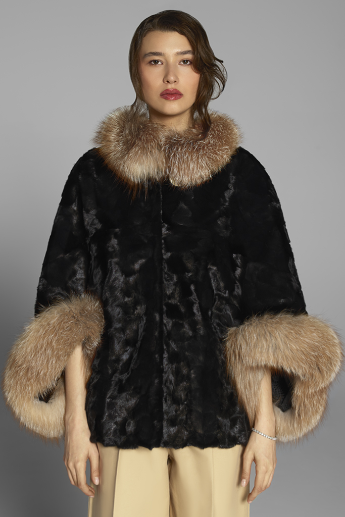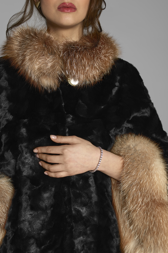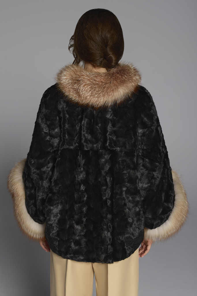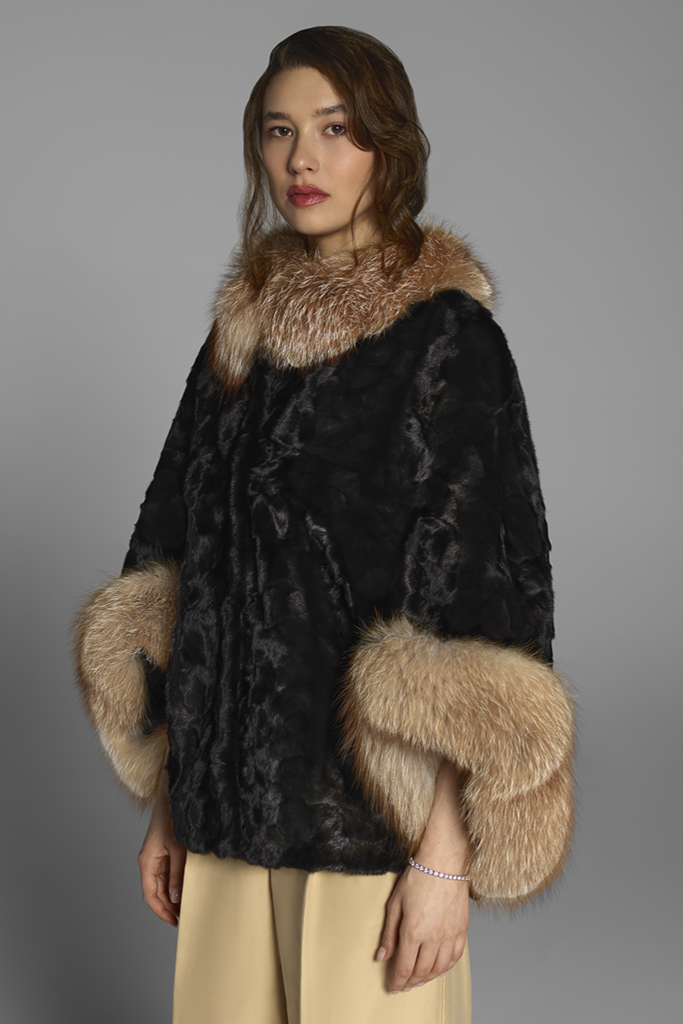 Haina de blana naturala de vizon ( nurca ) model fluture cu vulpe canadiana Gold Frost , FLUTURES , Negru , Carolina Design