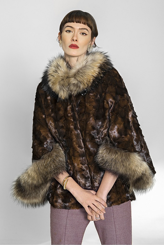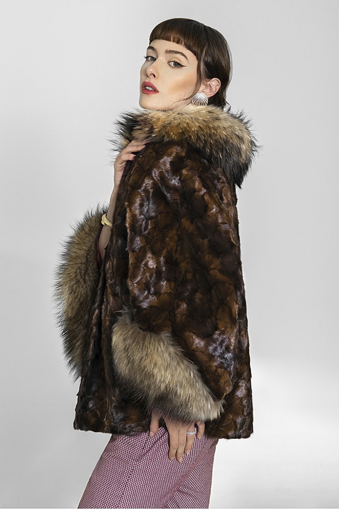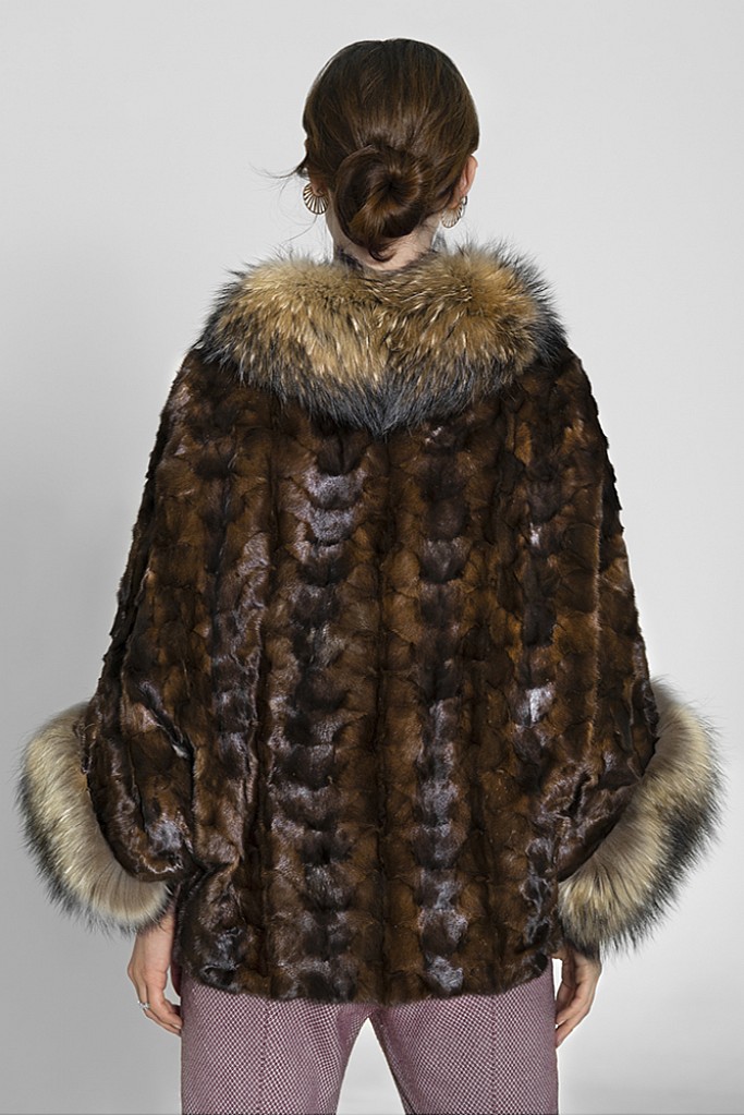 Haina de blana naturala de vizon ( nurca ) , cu Raton , FLUTURES , Maro , Carolina Design