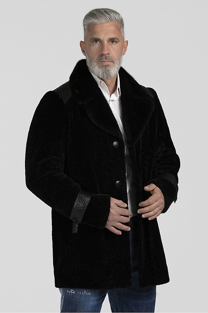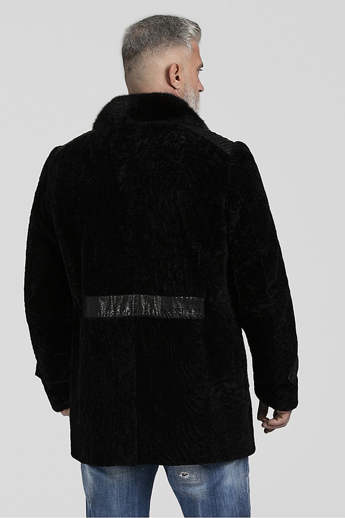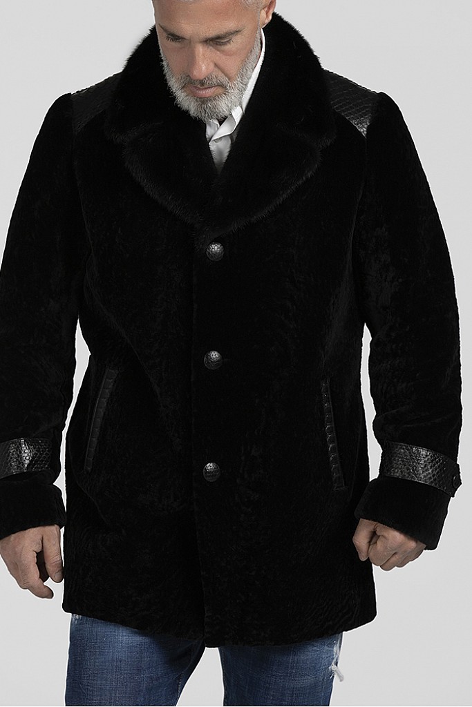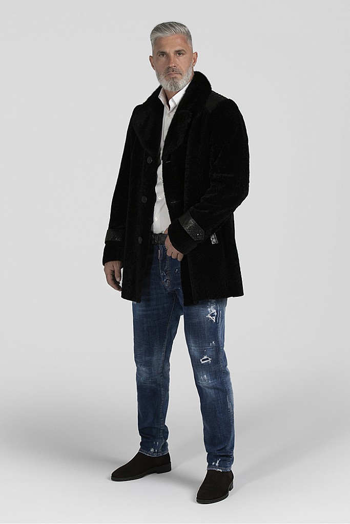 Haina de blana naturala de miel cu guler de Vizon accesorizata cu piton , Ryan , Carolina Design