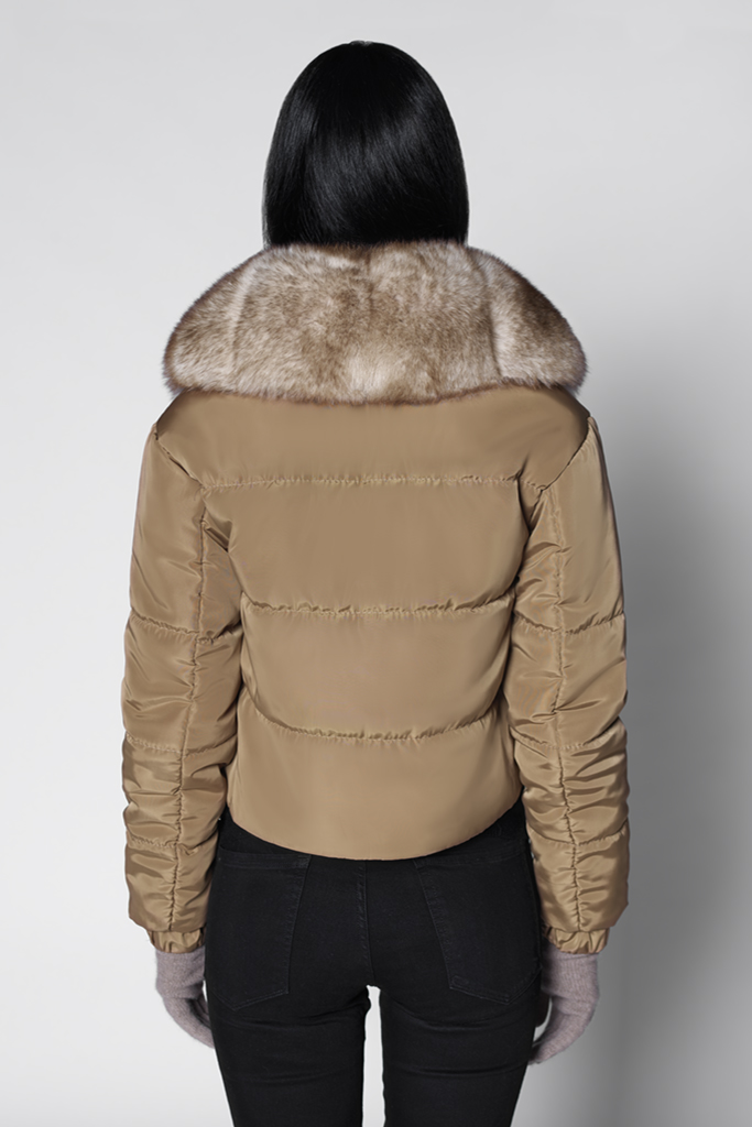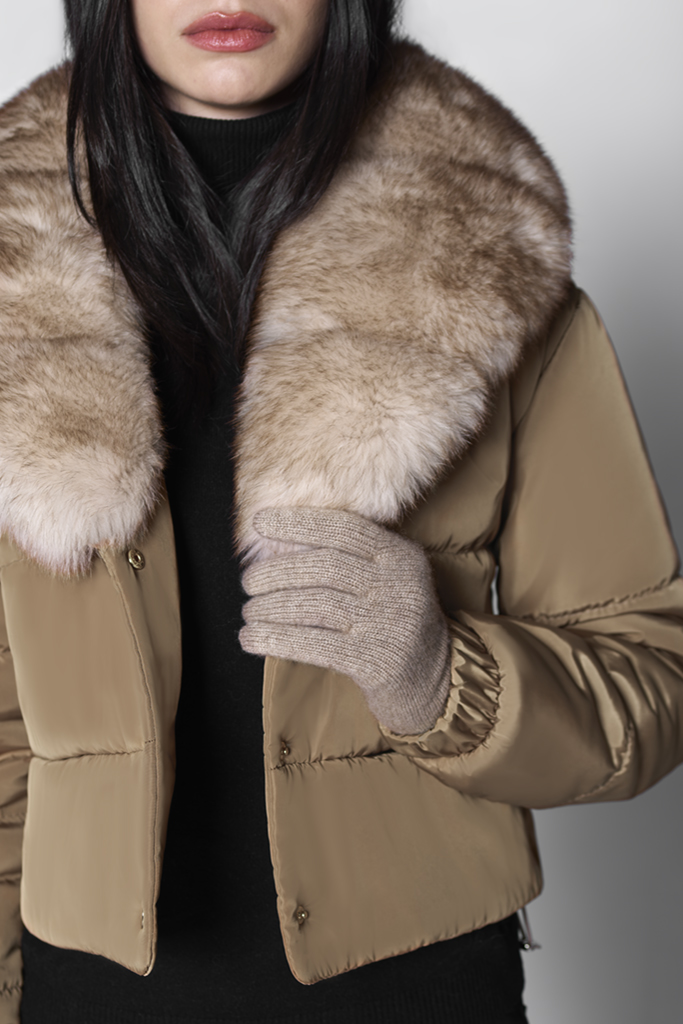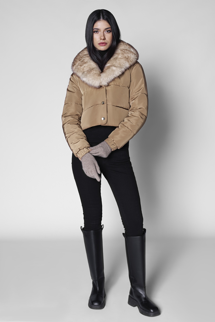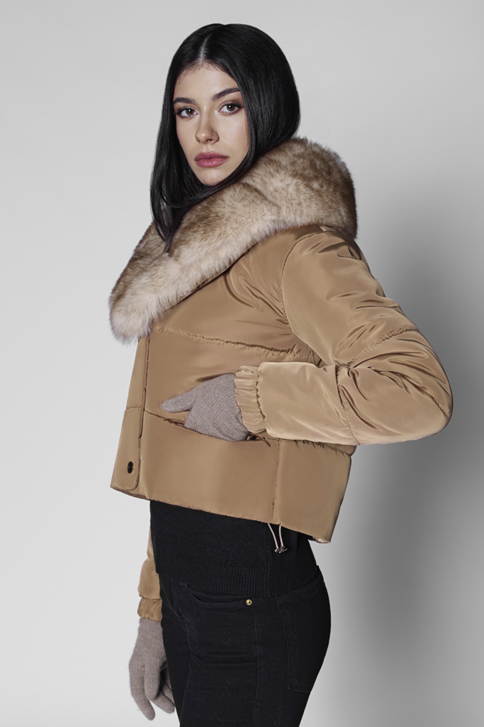 Geaca parka scurta caramel cu vulpe caramel , Lynn , Carolina Design