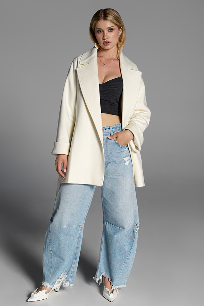 Palton scurt din Cașmir, Alb, Maura, Carolina Design