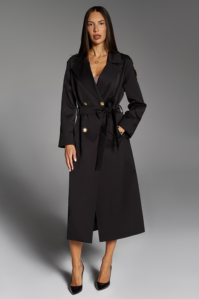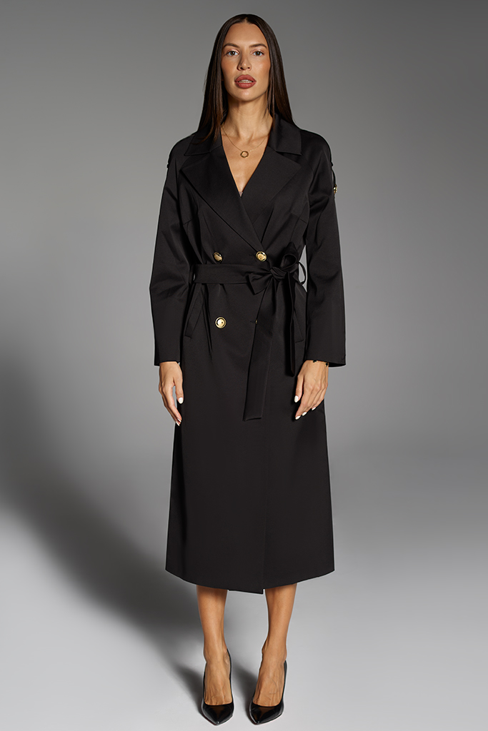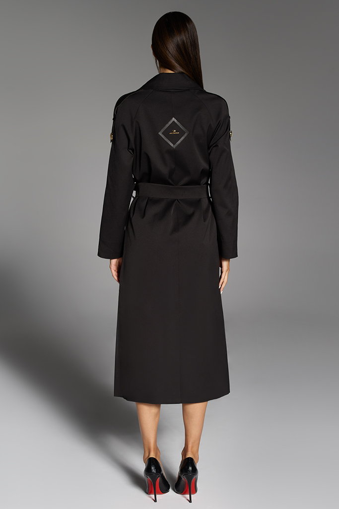 Trenci textil cu insertii din piele naturala, Negru, Darya, Carolina Design