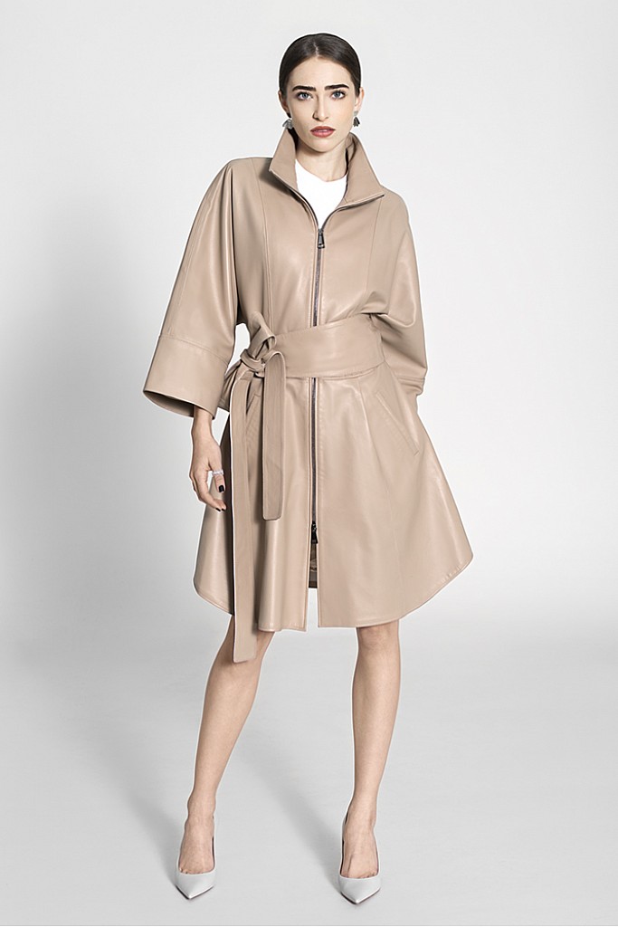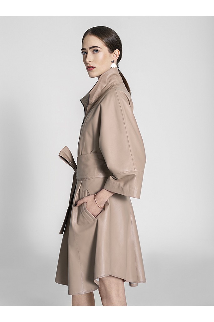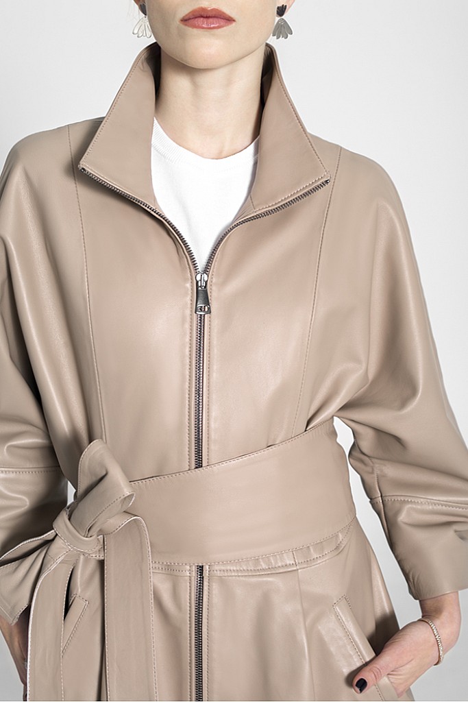 Jacheta de piele naturala 3/4 Melania , 1534 , Sepia , Carolina Design