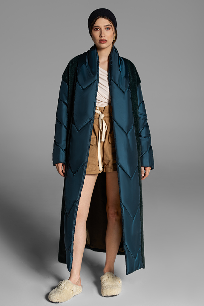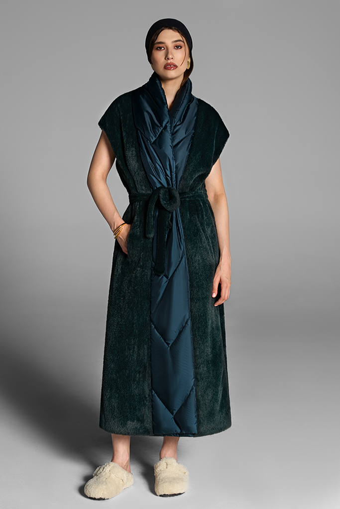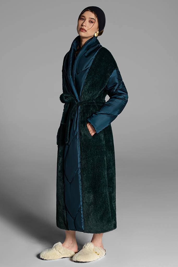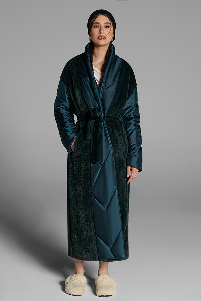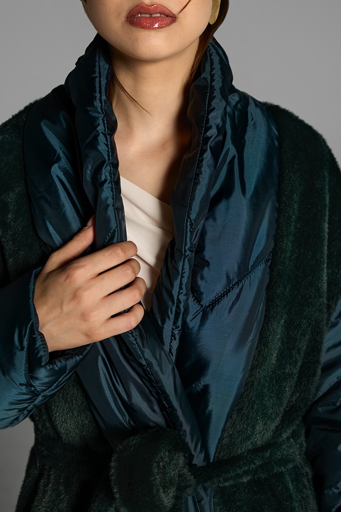 Palton 2 în 1 din Alcantara, cu fâș impermeabil, Verde Smarald, Lusia, Carolina Design