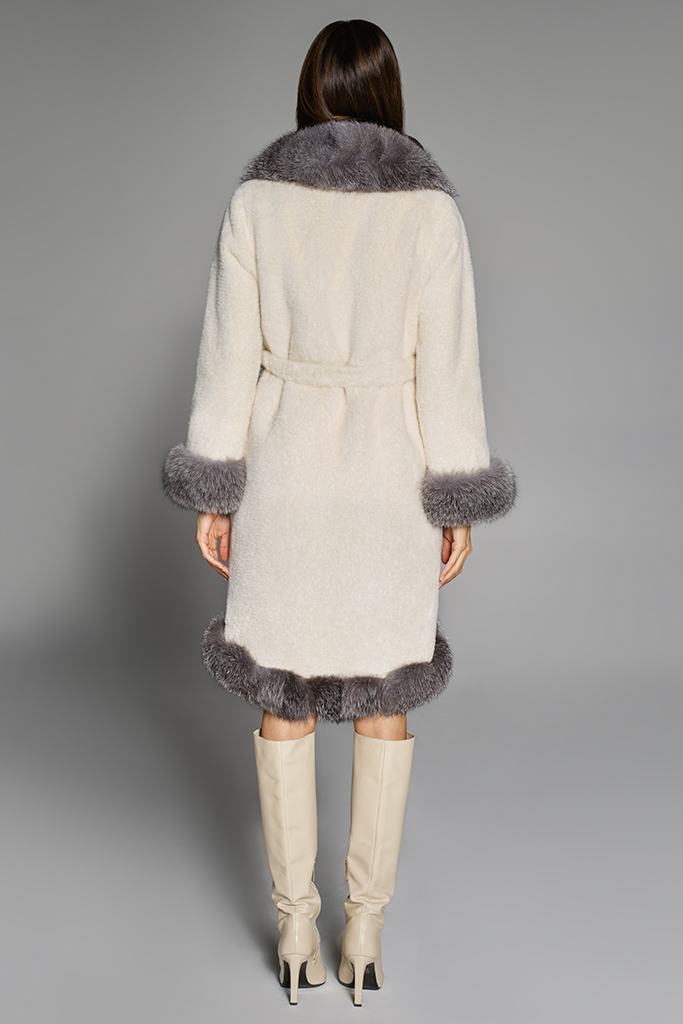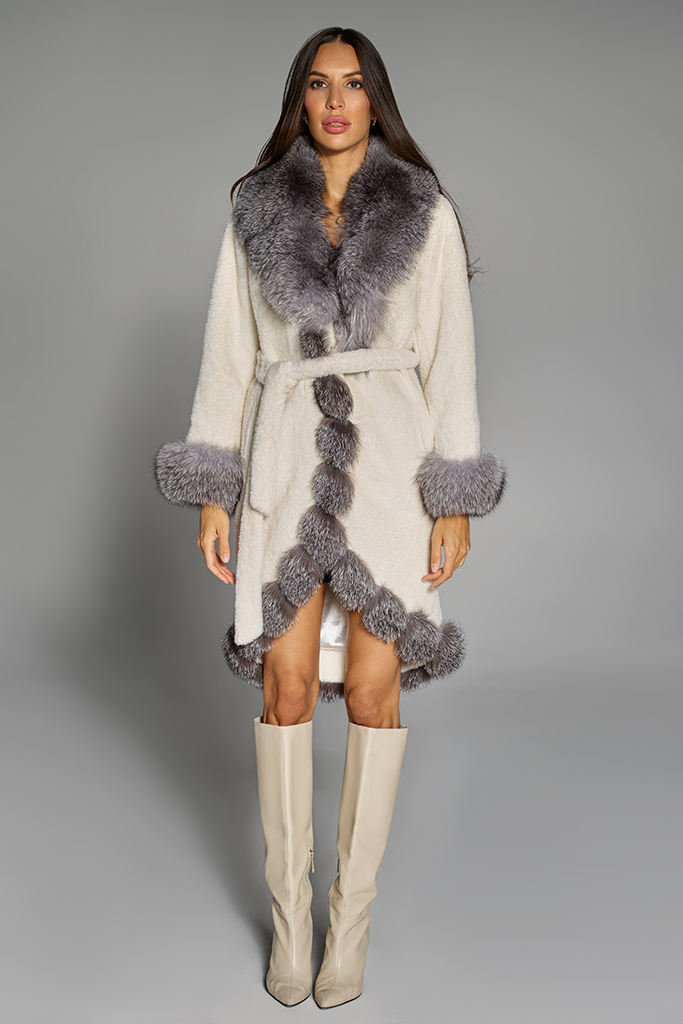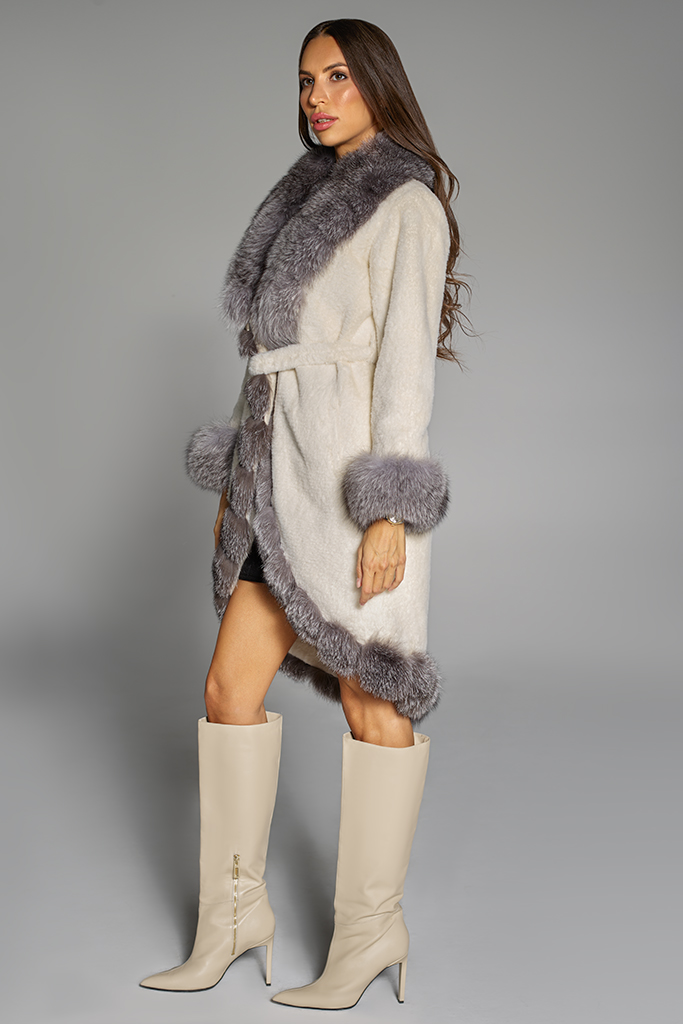 Palton din Alcantara Alb cu blana de Vulpe Argintie, Carolina Design x BLD