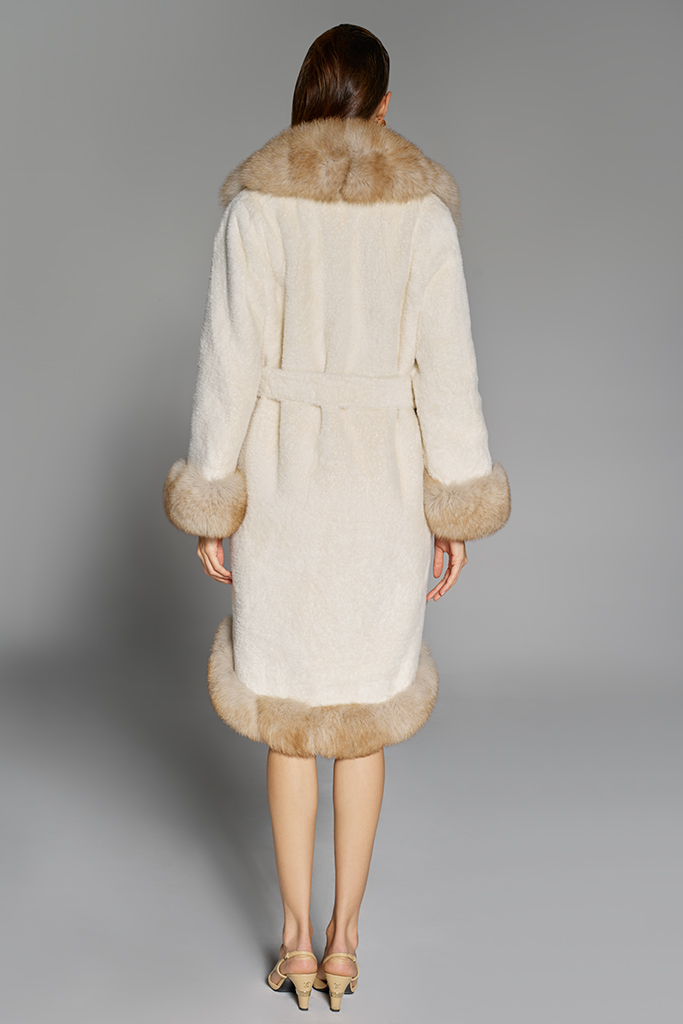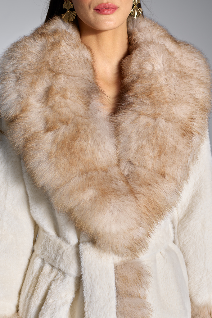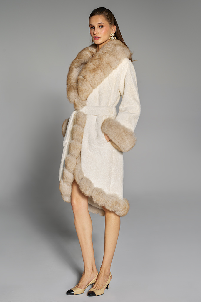 Palton din Alcantara Alb cu blana de Vulpe Caramel, Carolina Design x BLD