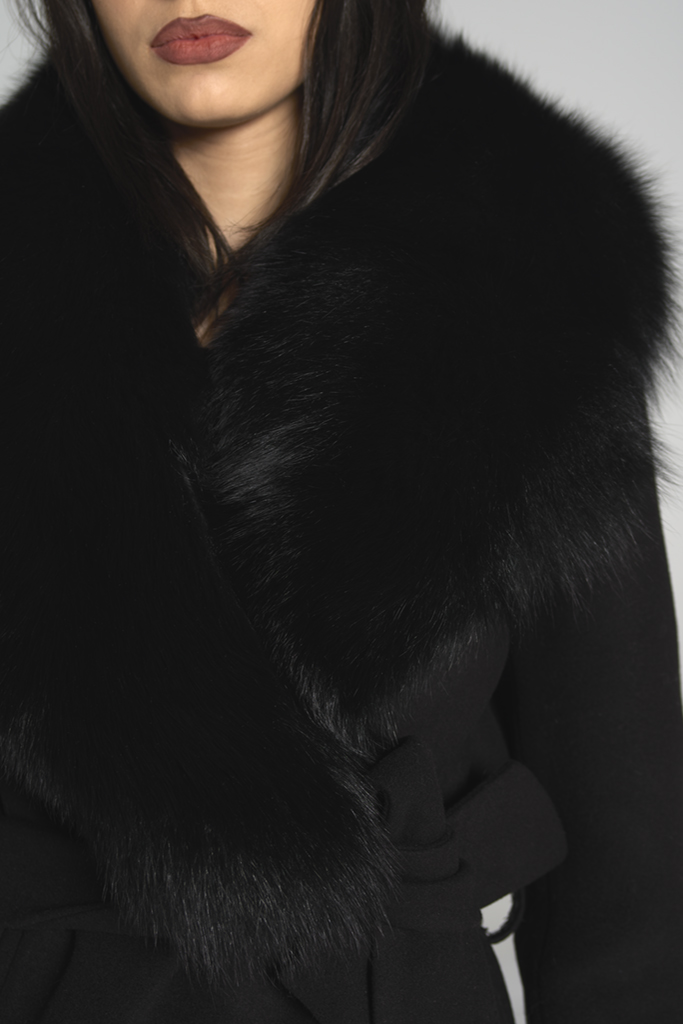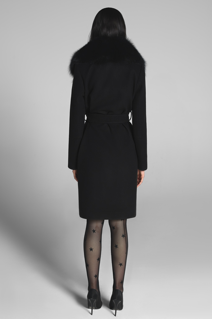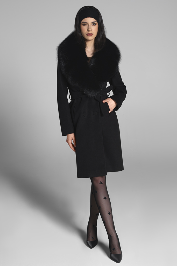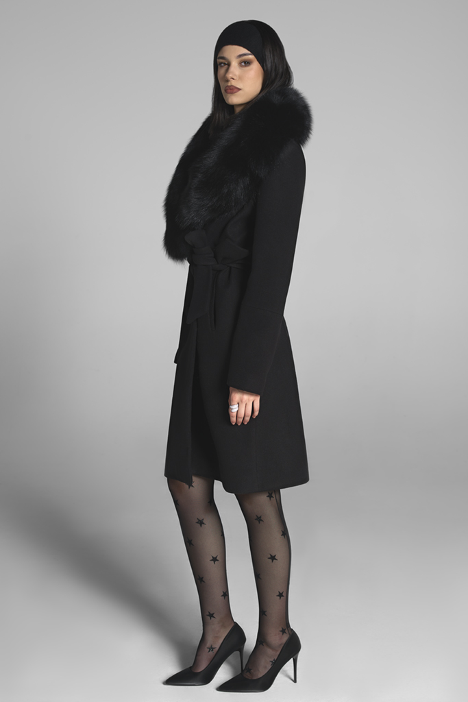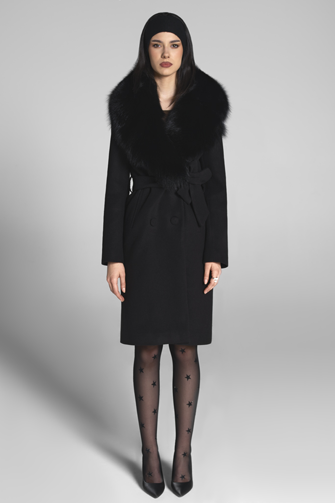 Palton din Cașmir, cu blană naturală de Vulpe Polară Neagră, Carolina Design
