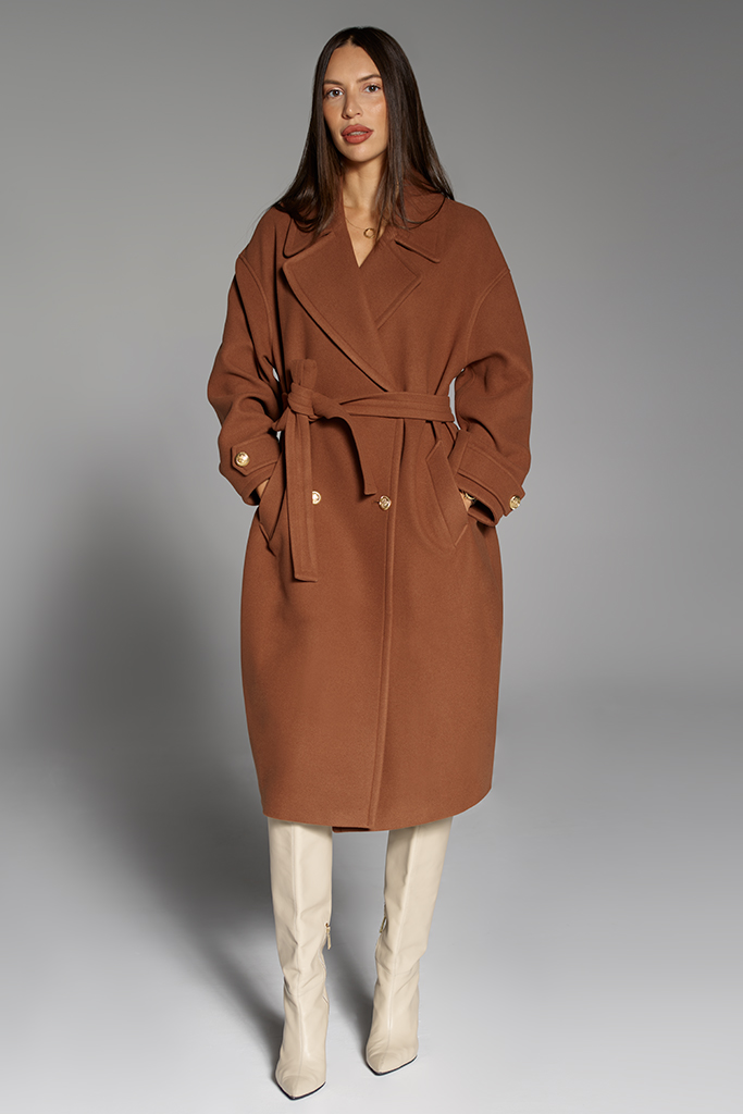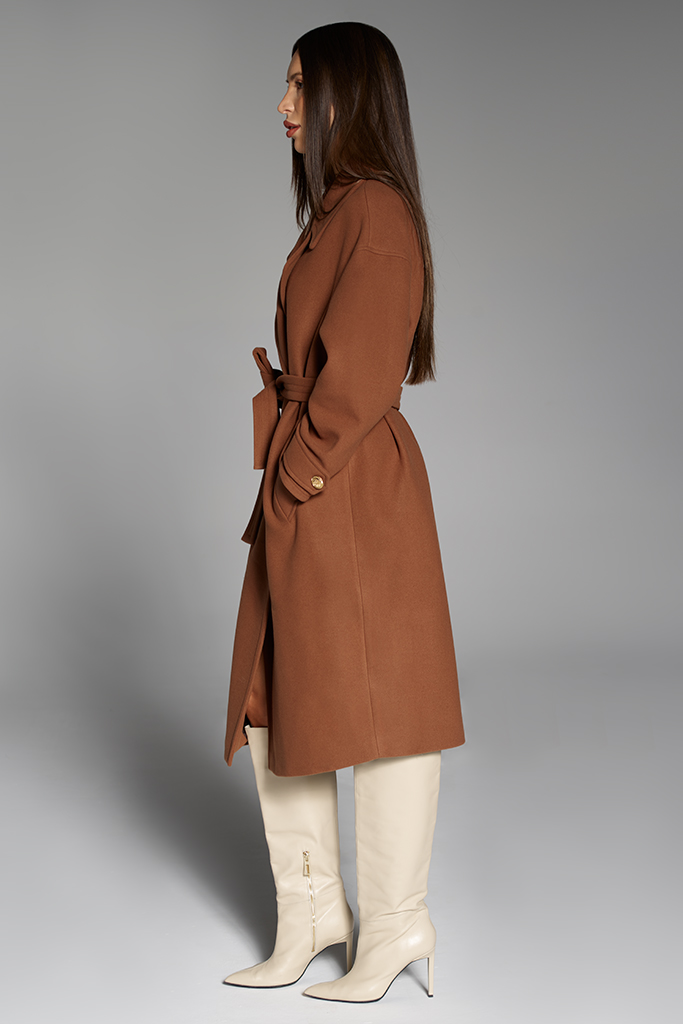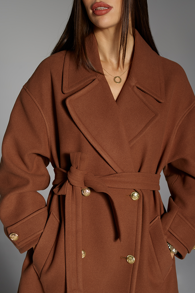 Palton din Cașmir cu nasturi, Camel, Celeste, Carolina Design