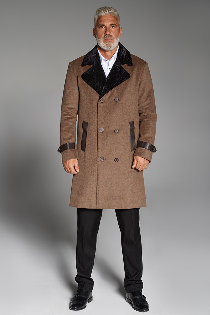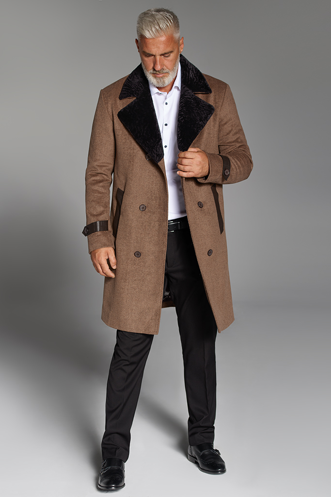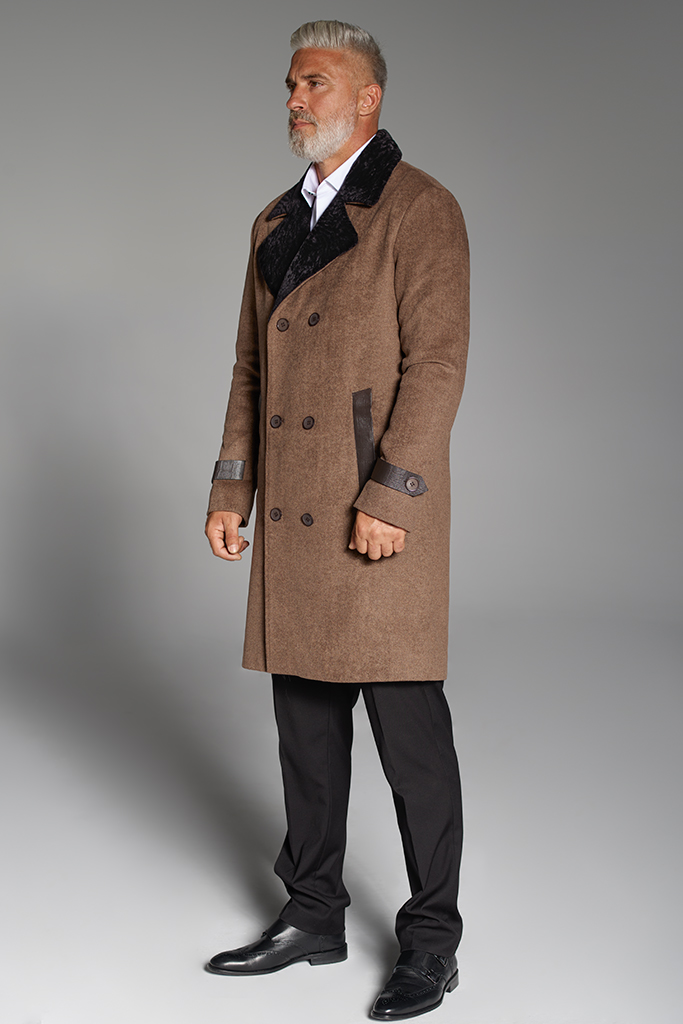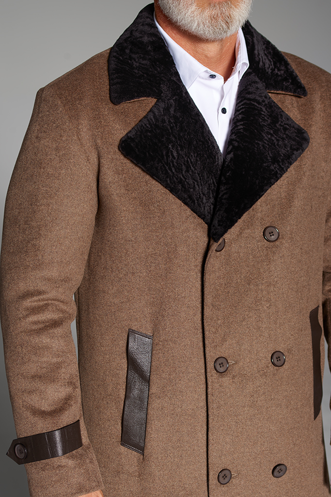 Palton din casmir si miel merinos, interior miel sudafrican, Bej, Don Corleone, Carolina Design