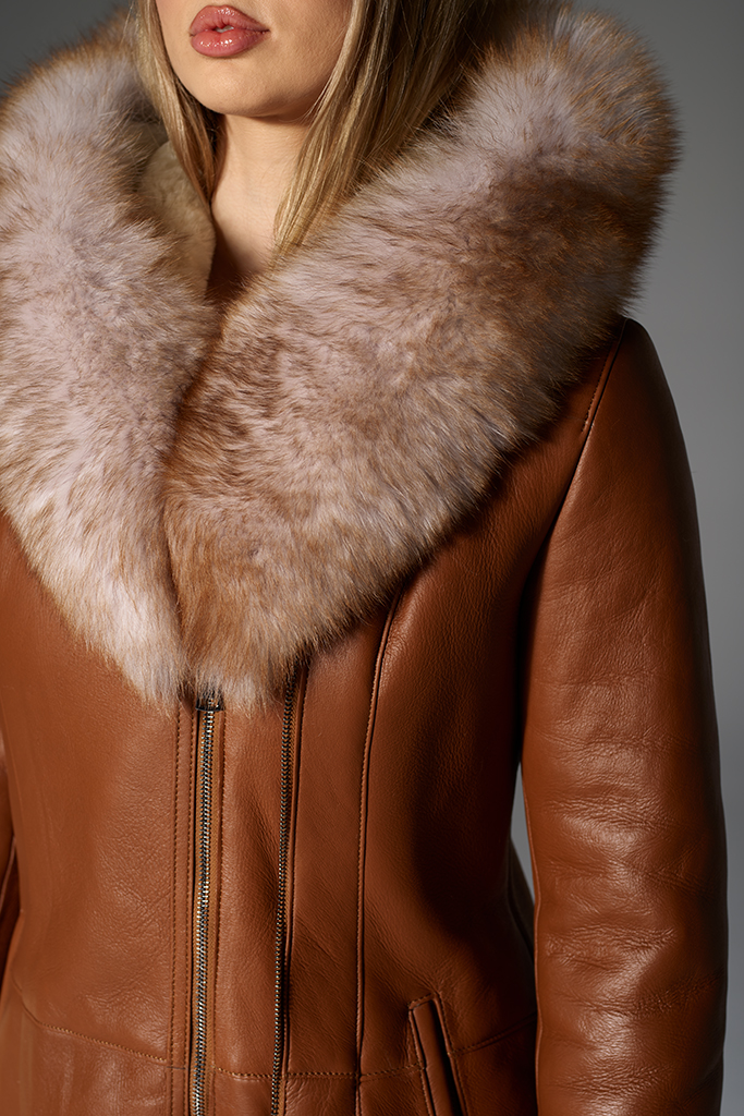 O piesă premium, creată pentru a evidenția luxul natural al vulpii polare caramel și confortul autentic al mielului merinos spaniol îmblănit.
