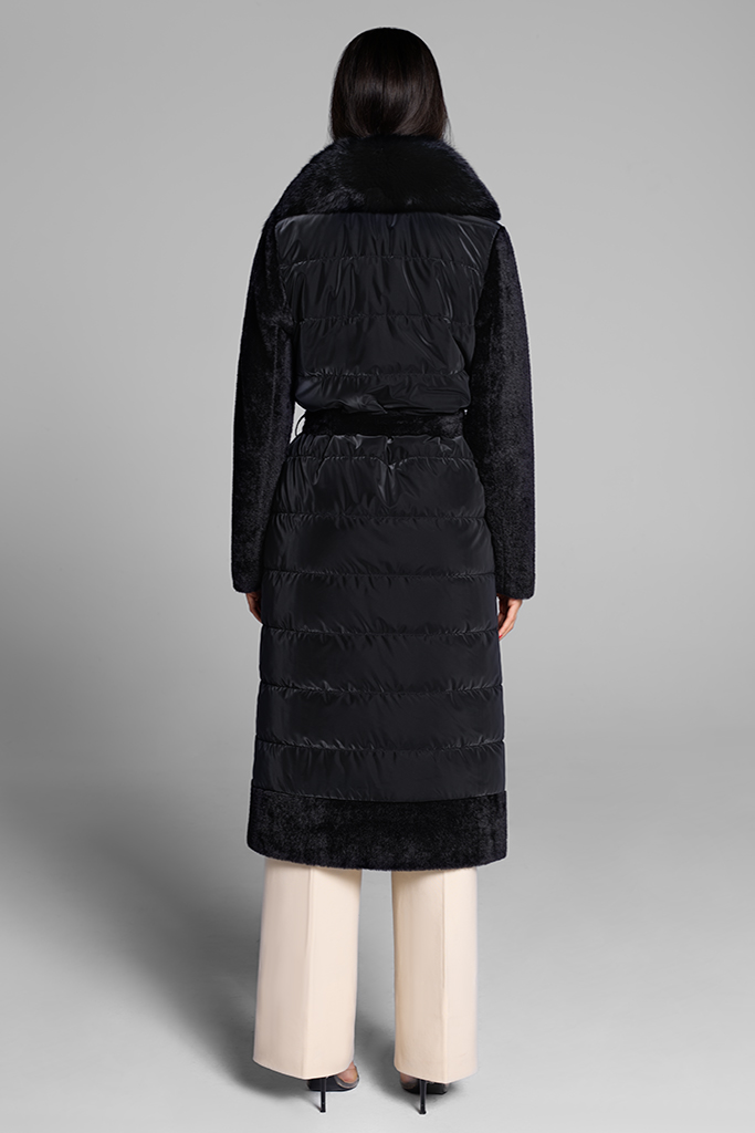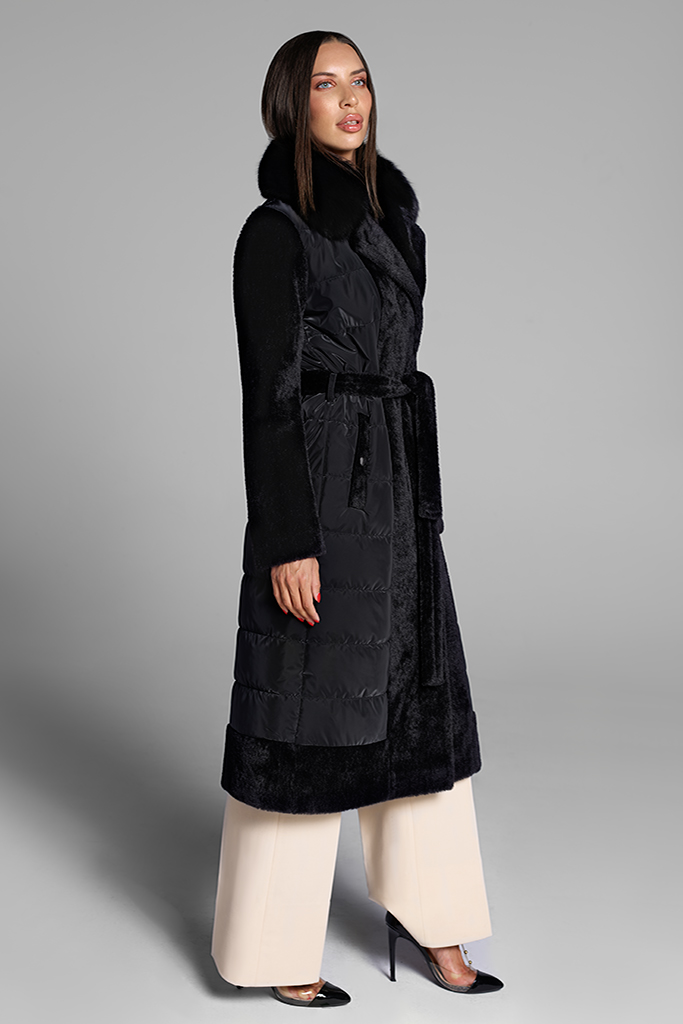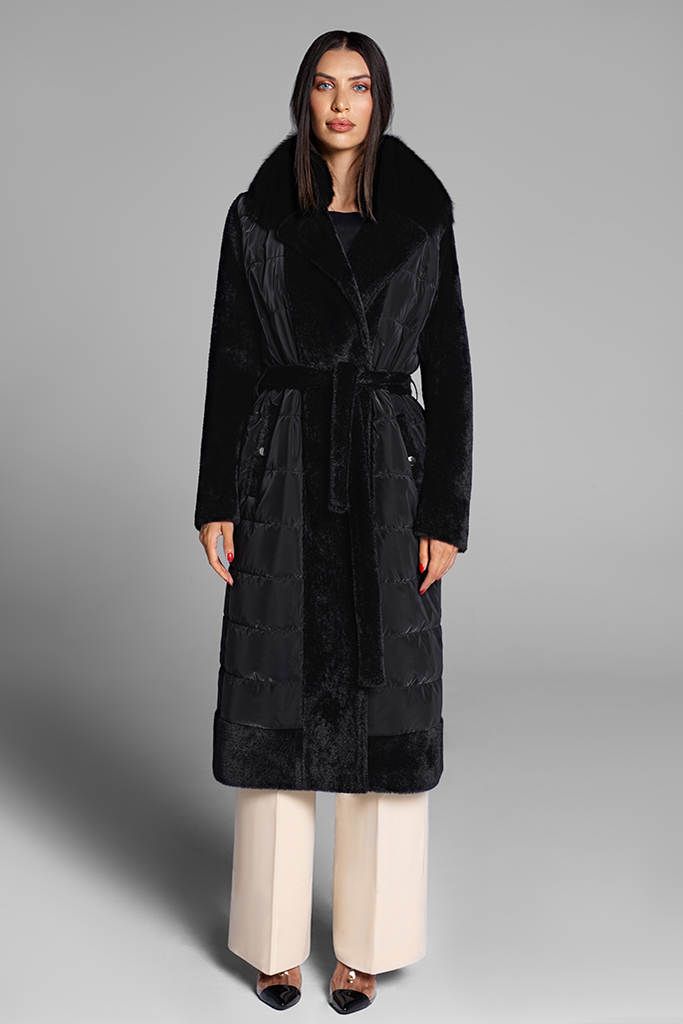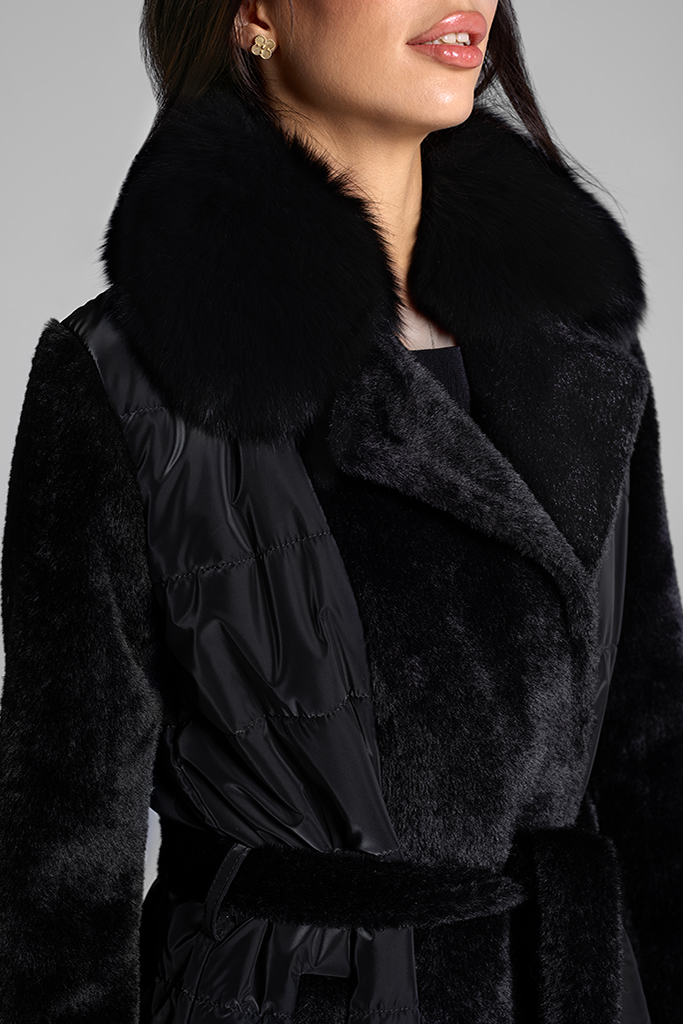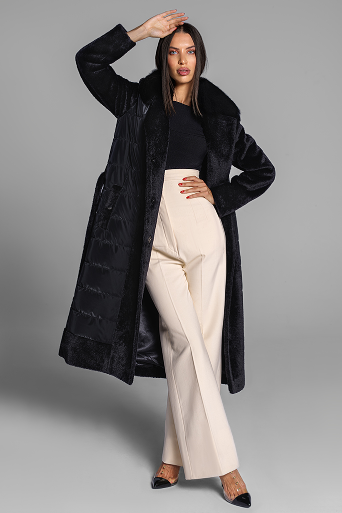 Palton fâș impermeabil cu Alcantara și Vulpe Polară, Negru, Kylie, Carolina Design