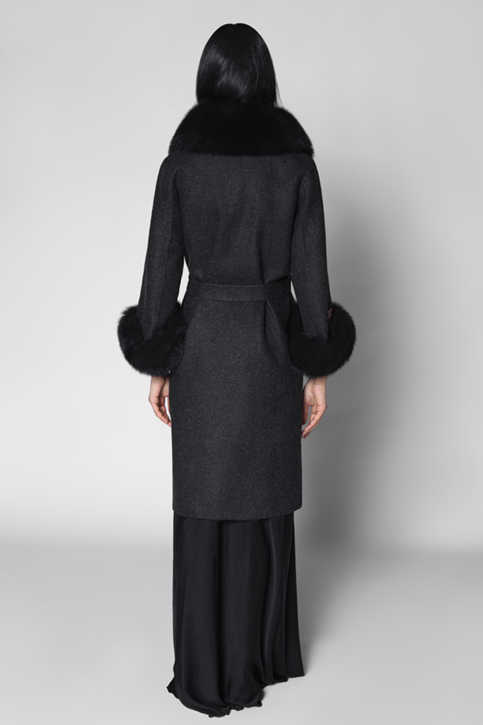 Palton din Lana de Alpaca cu blana naturala de Vulpe Polara ,