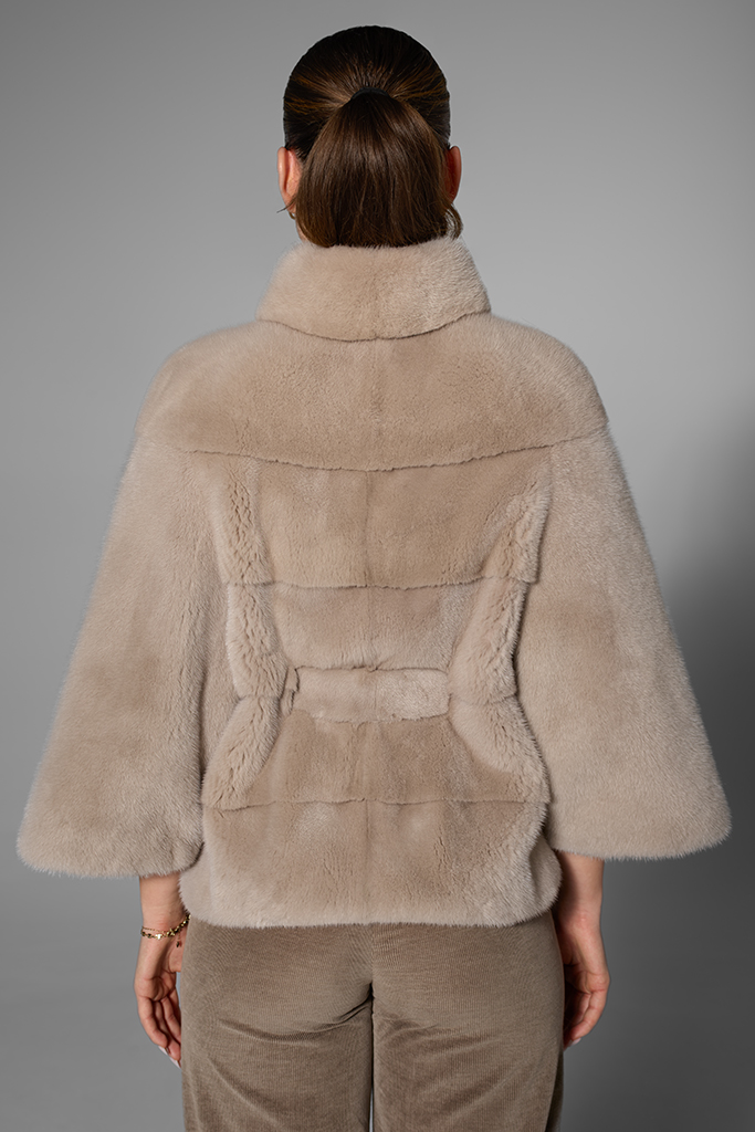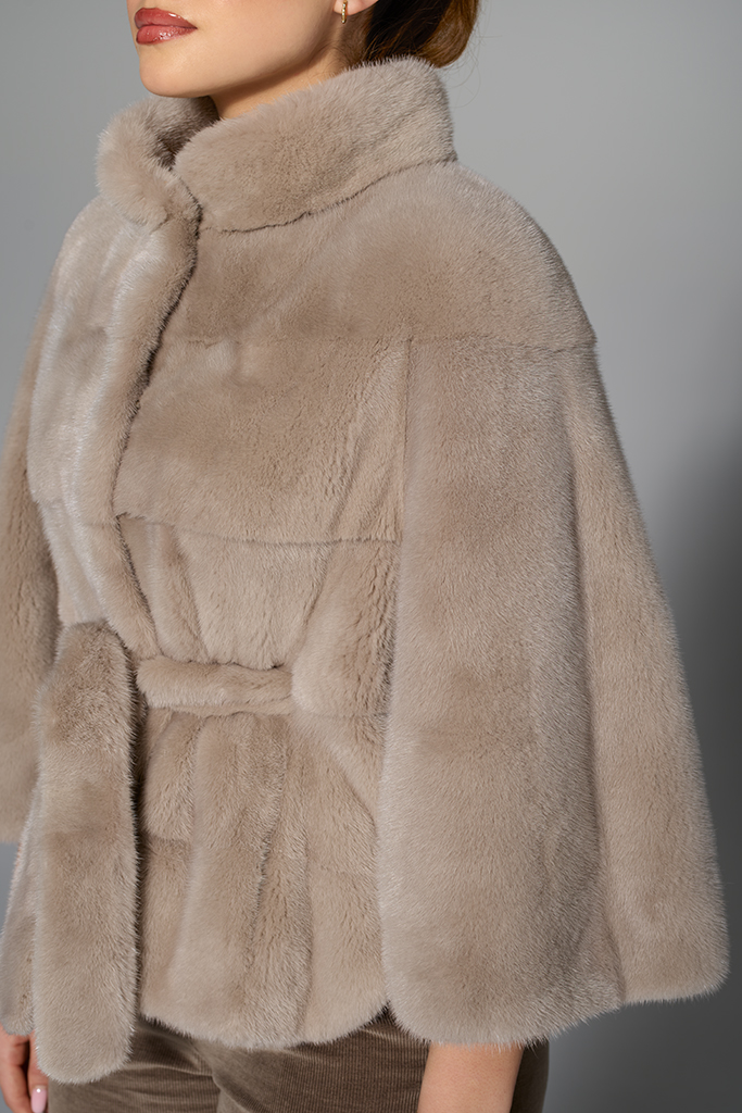Poncho din blană naturală de vizon (nurcă) – Mocha, Carolina Design
