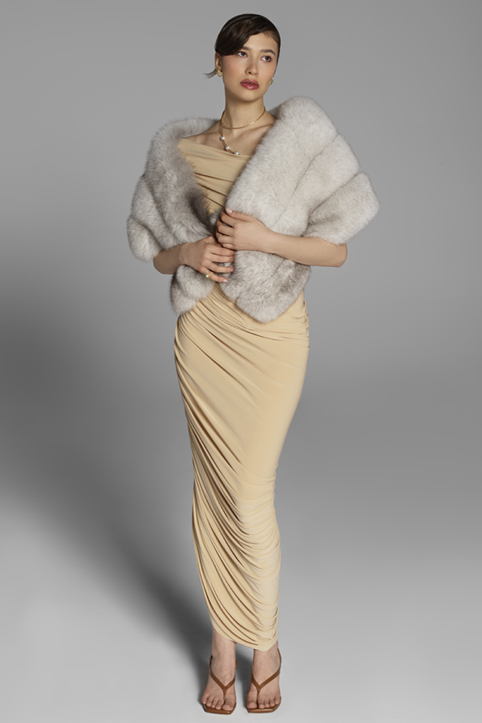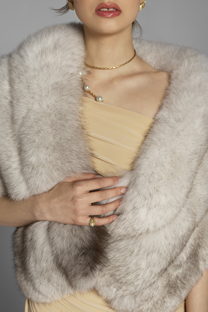 Salul din blana naturala de vulpe polara,este un articol vestimentar de exceptie,care ofera o eleganta aparte,dar in acelasi timp ofera si un confort termic optim.